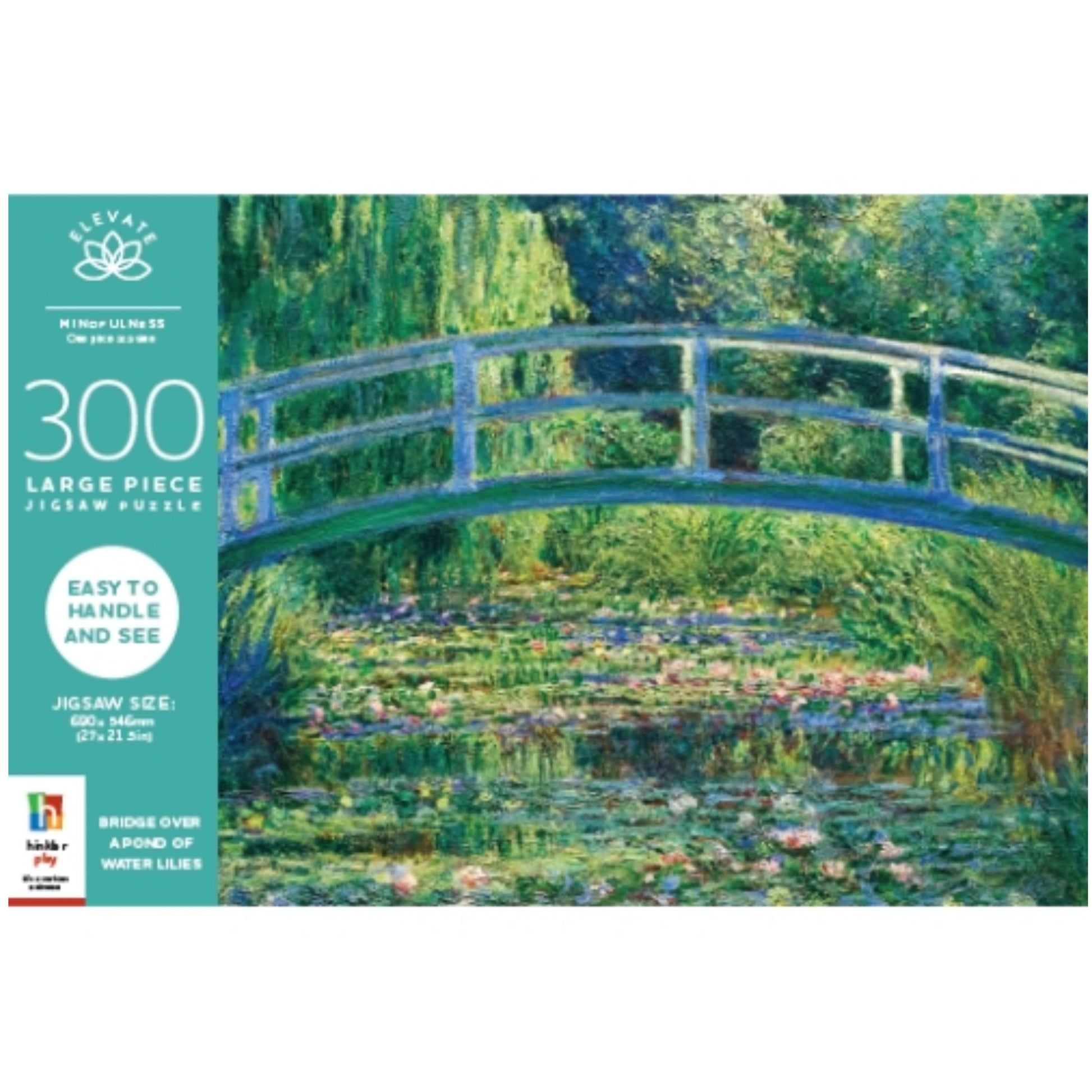 Get lost in the tranquillity of Monet’s masterpiece with the Elevate 300pc Jigsaw: Bridge Over a Pond of Water Lilies The puzzle's large pieces allow you to appreciate the delicate brushstrokes and calming colours without straining your eyes, and they are easy to handle and interlock to allow for an enjoyable, peaceful experience. Use the reference image printed on the inside of the box lid, or if you need a little more help, there's a double-sided actual-size reference poster with and without the jigsaw pattern. Whether you're a seasoned puzzler or just starting out, this captivating puzzle promises entertainment and satisfaction!