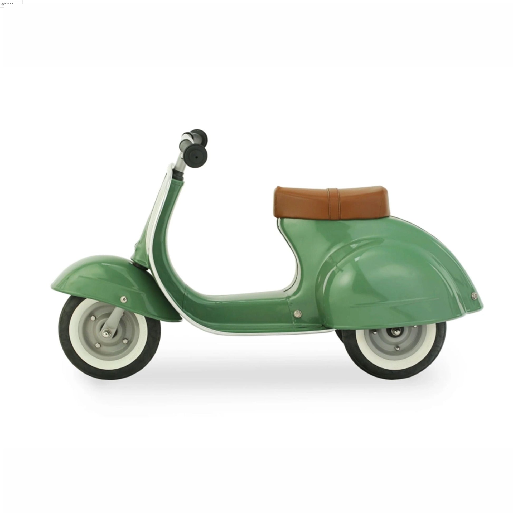 PRIMO ride on toys combine classic Italian design with finest craftsmanship to create a timeless ride on scooter. PRIMO is the perfect gift for boys and girls from the toddler age up to 5 years old. PRIMO is a design object and fits into every stylish living room. PRIMO with its classic design is a collectible for every classic vehicle enthusiast. PRIMO received the prestige award ‘Best Toy 2019’ given by the ASTRA (American Specialty Toy Retailing Association). PRIMO is the ultimate toy, as our frame is built for longevity with only durable and high-quality materials. Safety and quality are our top priorities, making the self-propelled PRIMO ride-on scooter ideal for one year old up to 5 years old. Our frame consists of solid metal sheets, welded by hand out of several individual pieces, thereby assuring each toddler car is made with the highest quality and longevity. The finished frame is powder coated in the color listed in the product title. An aluminum trim is mounted around the leg-shield for extra stability, protection, and vintage look. The wheels of our PRIMO ride on toys contain two metal rims, powder coated in grey and assembled with 4 stainless steel screws. The tires are made safe for small children with smooth black plastic and include a white wall ring for an authentic classic look. he handlebar, the fork and the drivetrain are hand-bended metal tubes, subsequently powder coated in grey. Hard coated exteriors protect our PRIMO toddler toys from outside elements. The ride on handles are made of black plastic and include a 3D print of the logo Ambosstoys. The soft cushion seat is covered with artificial leather for maximal comfort and old-fashioned look. PRIMO is self-propelled. This means the "engine" is the rider itself! This keeps girls and boys highly active, while at the same time it stimulates their neuronal development of motor and coordination skills. The key specifications of PRIMO are the following: Product dimension: 30-inch-long, 12 inch wide, 17 inch high (handlebar) and 12.5 inch seat height. Product weight: 13 lbs. Recommended age range: 1-5 years Max allowed weight: 44 lbs (Limit due to lack of brakes, not due to stability or quality). ESIGN: PRIMO is a meaningful, valuable, and quality kids ride on toy for 1- to 5-year-old kids made of metal in a simple timeless design. GREAT GIFT: PRIMO toddler scooters for boys and girls are the perfect gift for your child, grandchild or beloved one. PRIMO features extremely easy one-step assembly in minutes (necessary tools included). PIECE OF ART: Stylish, nostalgic classic Italian design PRIMO scooter is the must-have collector piece for classic vehicle enthusiast and design lovers. COMFORT RIDING: PRIMO self-propelled (no motor or batteries!) kids scooter provides a quiet and smooth ride while offering the necessary stability and support for your kid at the same time protects your floors and ensures that the wheels last longer. AWARD-WINNING: The winner of THE BEST TOY 2019 given by ASTRA, The American Specialty Toy Retailing Association. Nominated for the 2021 Toy OSCAR (TOTY). PRIMO ride on toys are handmade, durable, and timeless objects of desire! You buy value when buying from Ambosstoys.