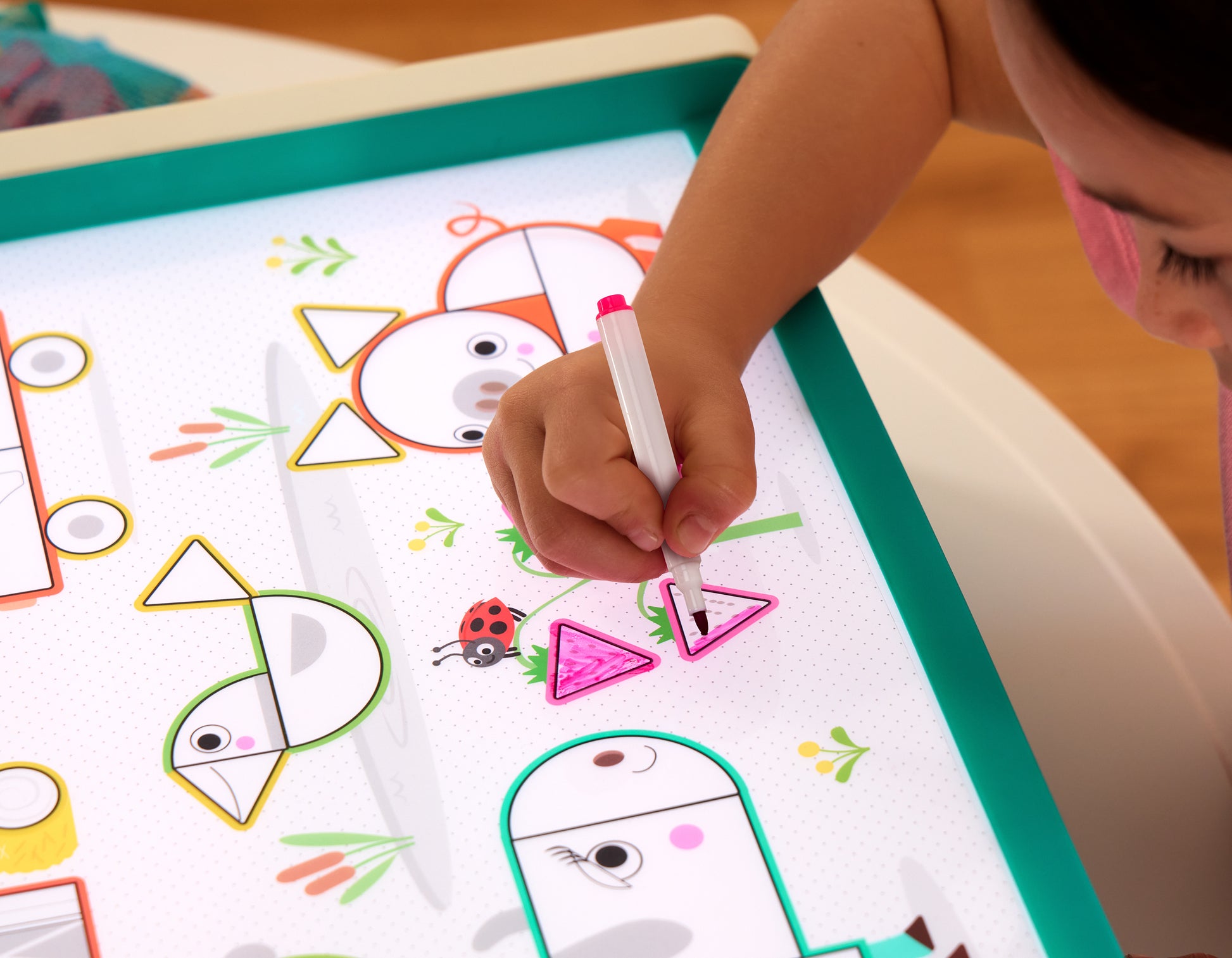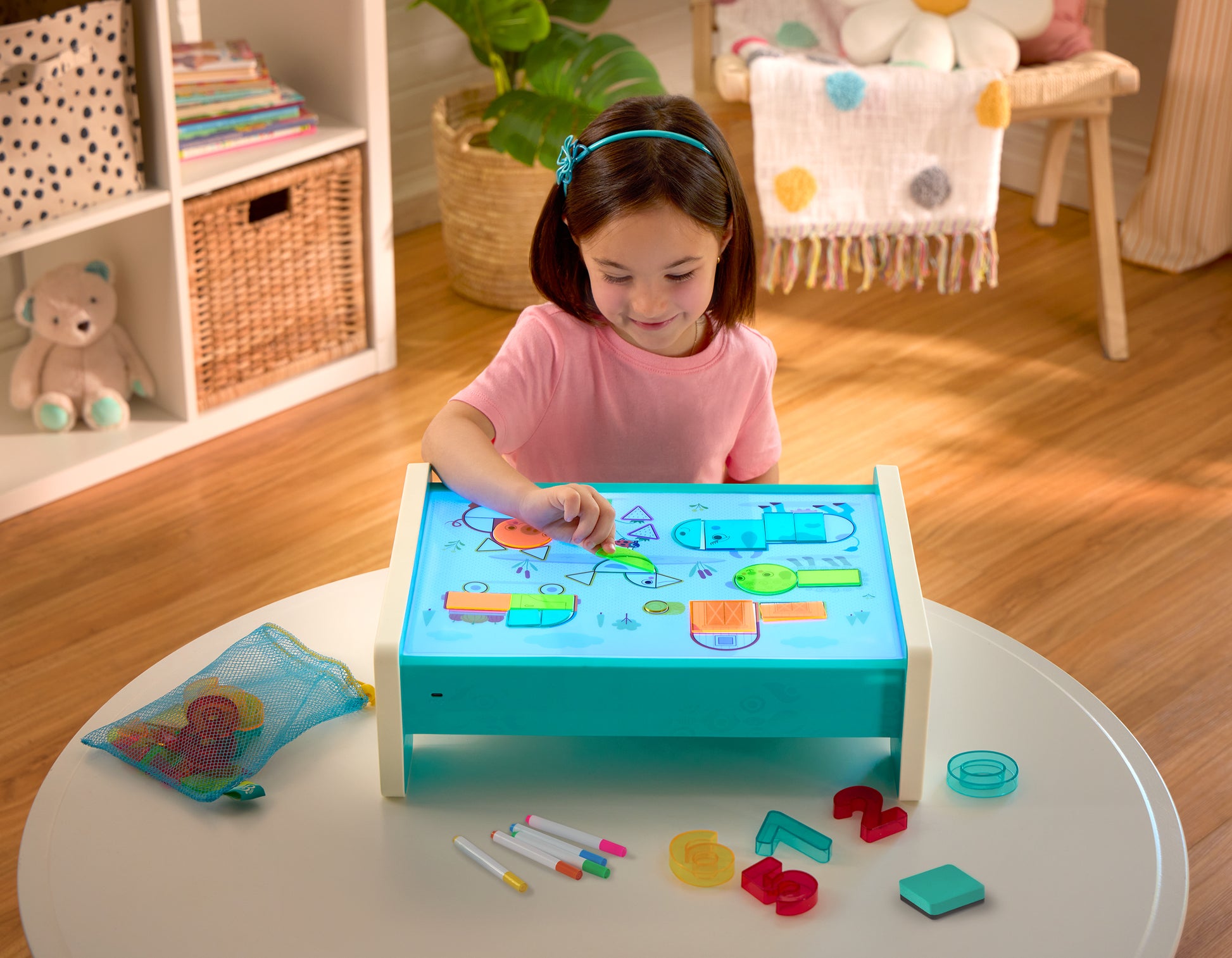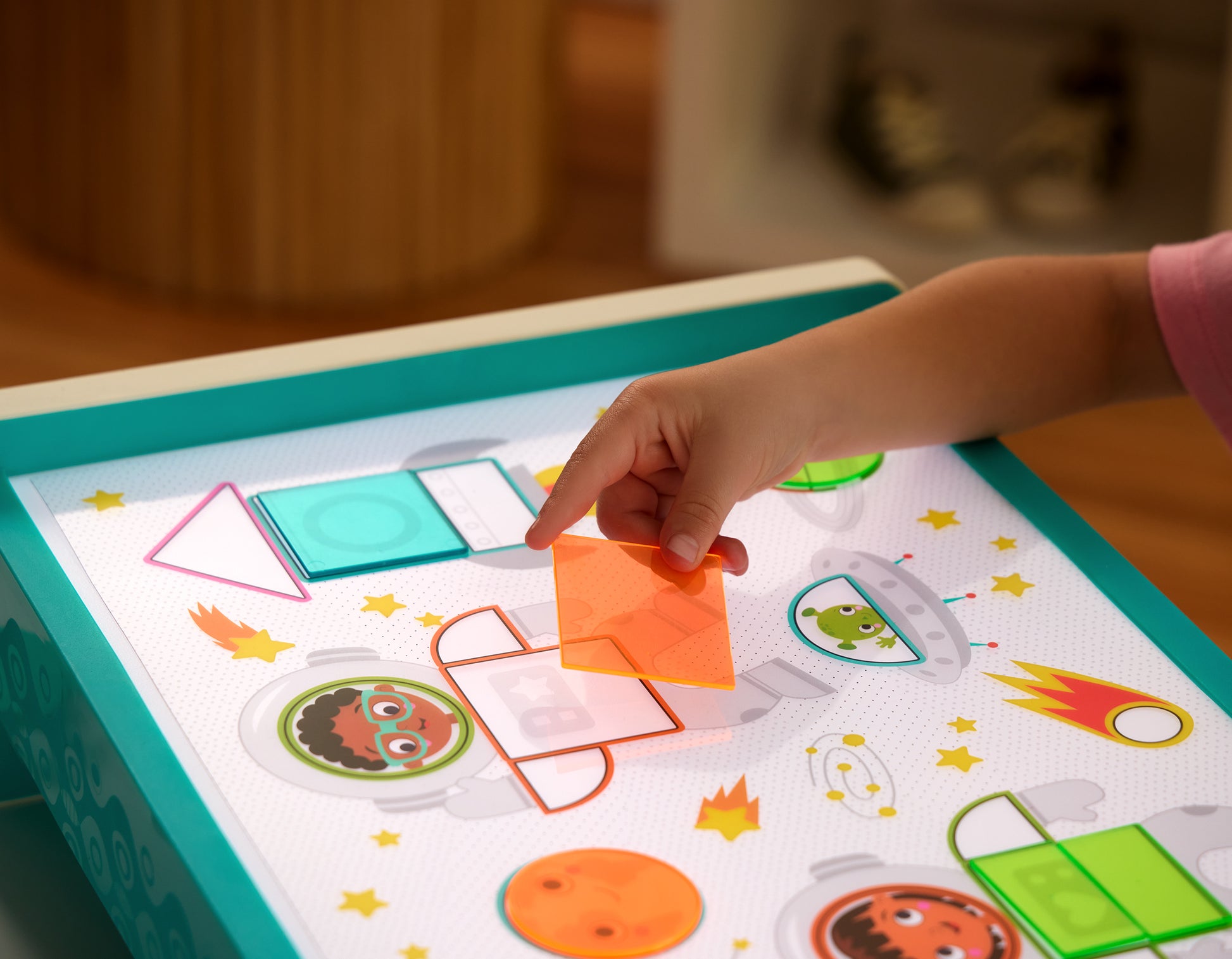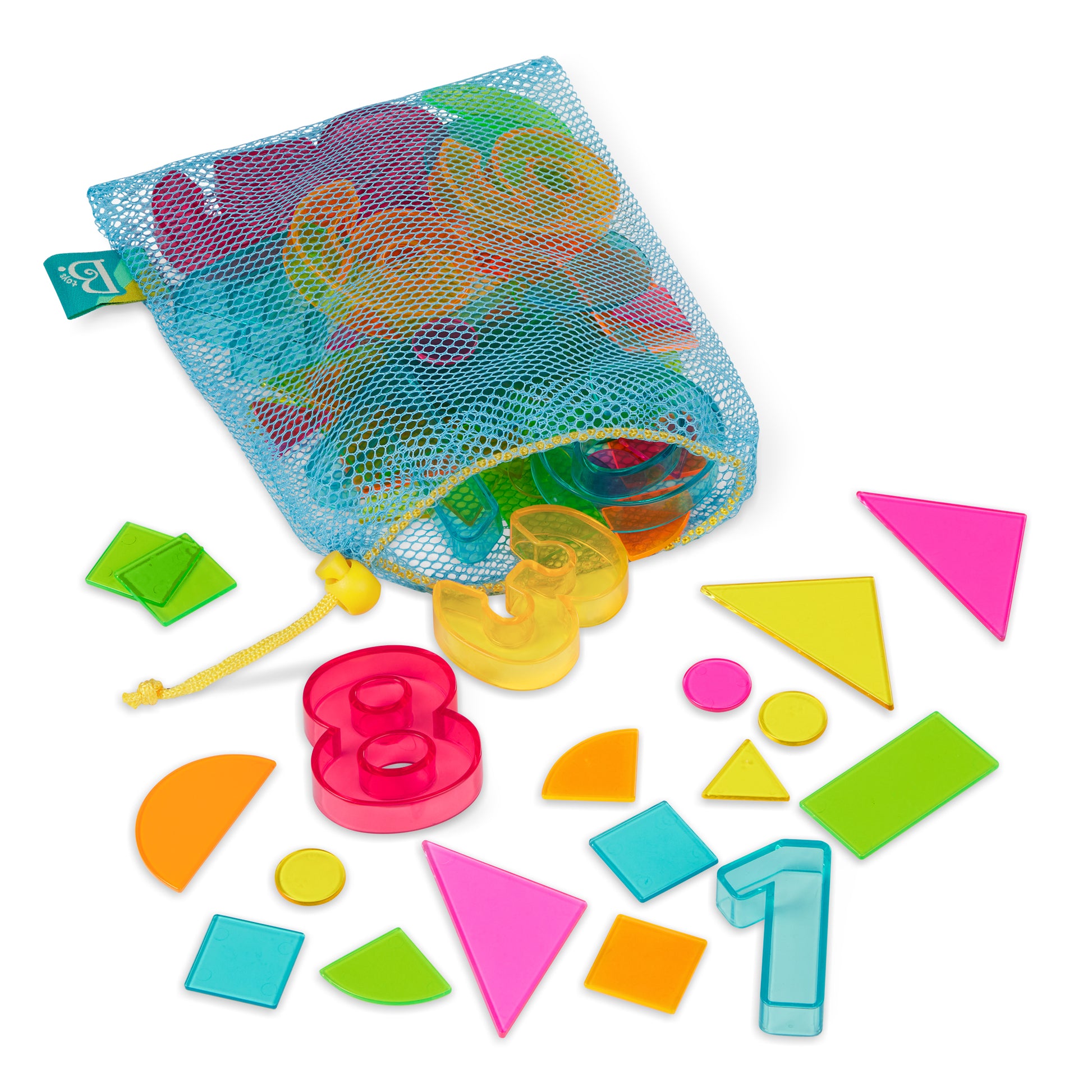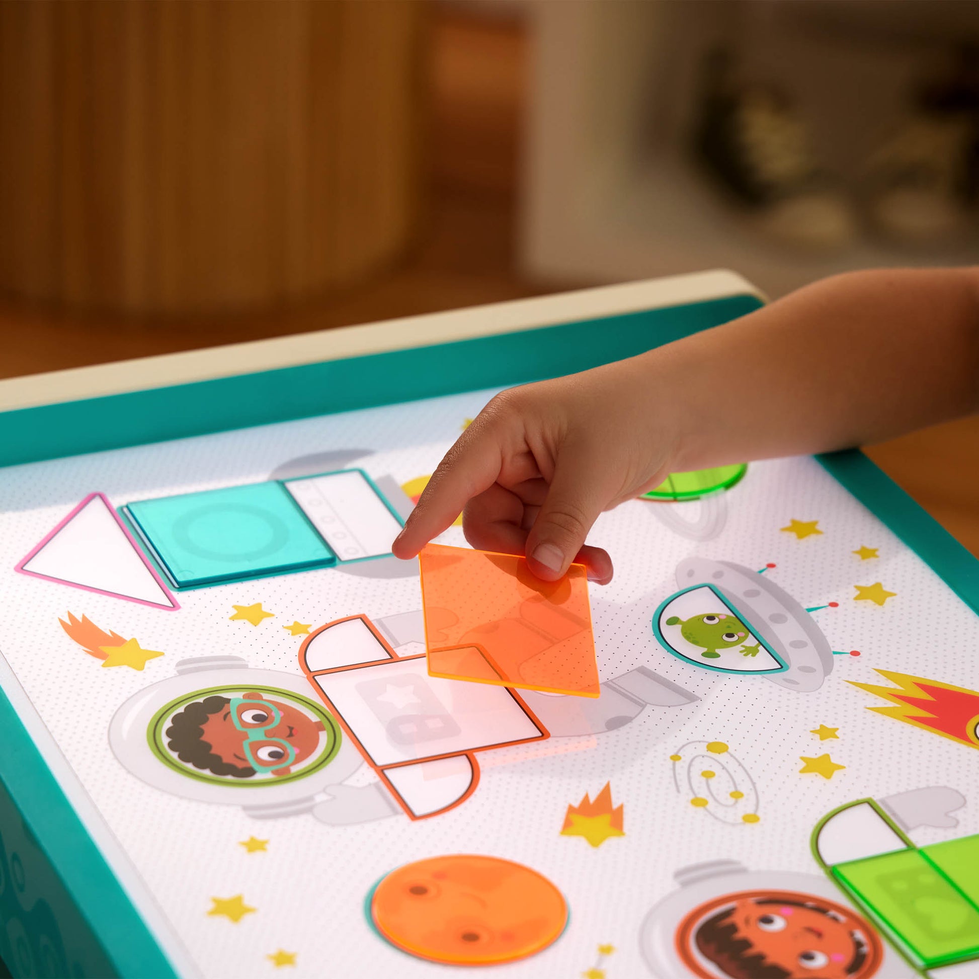 Light up and add color to learning with the Look & Shine lightbox playset from B. toys! Make playtime shine with this educational lightbox, featuring loads of hands-on and screen-free playtime opportunities. Kids can explore 50 translucent shapes and 10 numbers on the glowing surface of the lightbox, but the magic really happens with the 3 transparency sheets! Match, trace, and create over and over again, thanks to the included dry-erase markers — and then transform everything with the lightbox’s 5 different colors! As kids play, they’ll be practicing counting, pattern recognition, and exercising their fine motor skills and creativity. This engaging playset can be powered by USB-C (cable not included) for endless fun, or even keep shinin’ on the go thanks to battery power (6 x AA batteries are required, not included). Recommended for children 3 years old and over.