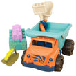Build the tallest castles with these beach tools. Rake and shovel with groovy grips. Large dump truck and 2 castle molds for sand.
