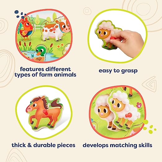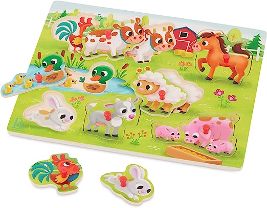 Wooden puzzle farm animals ''Peek & Explore'. Learn to recognize different farm animals by trying to place each one on the board.