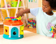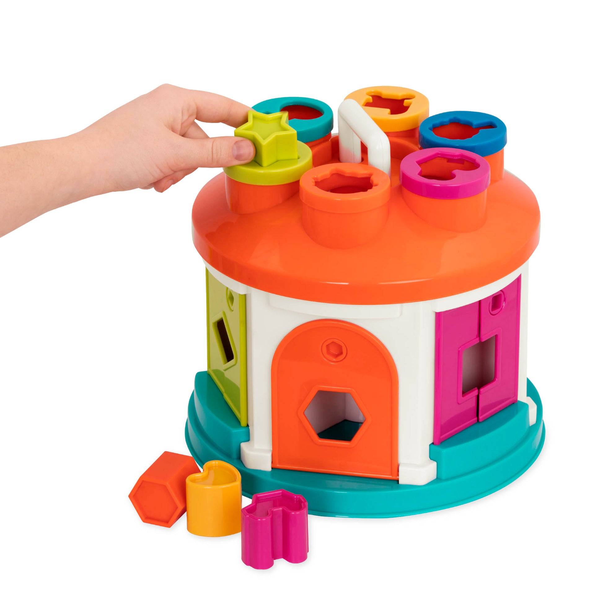 Match the shapes to the windows and pop the shapes inside. Then unlock the doors with the colour-coded keys and start all over again. Learn colours, shapes, cause-and-effect and more. This little house is filled with big discoveries. Comes with: 1 shape sorter house, 12 different shapes, 1 set of colour-coded keys.