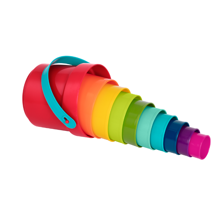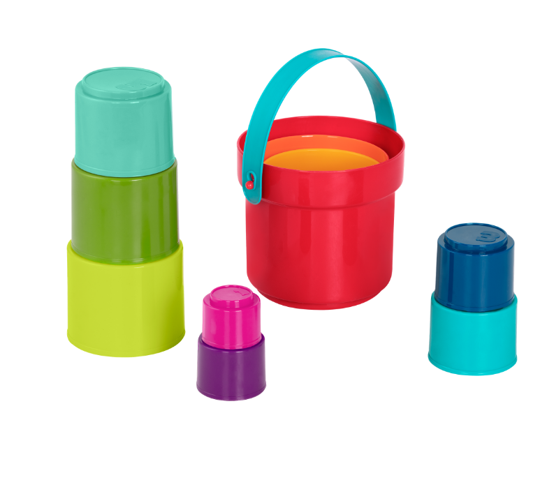 Pick the cups up, up, up All the way to the top! The classic and colorful nesting cups from Battat come with tons of fun and loads of learning. Count from 1 to 10 – there’s a number embossed at the bottom of each cup! Then discover vibrant colors like blue, orange, green, and purple. The Stack Up Cups set can also travel with your toddler to the tub, the pool, the backyard or the beach for endless playing possibilities. A skill-building toy, these educational stacking cups can help develop your child’s fine motor skills and improve their hand-eye coordination. And storage is easy-peasy – simply nest all of the cups in the bucket and clean-up is done!