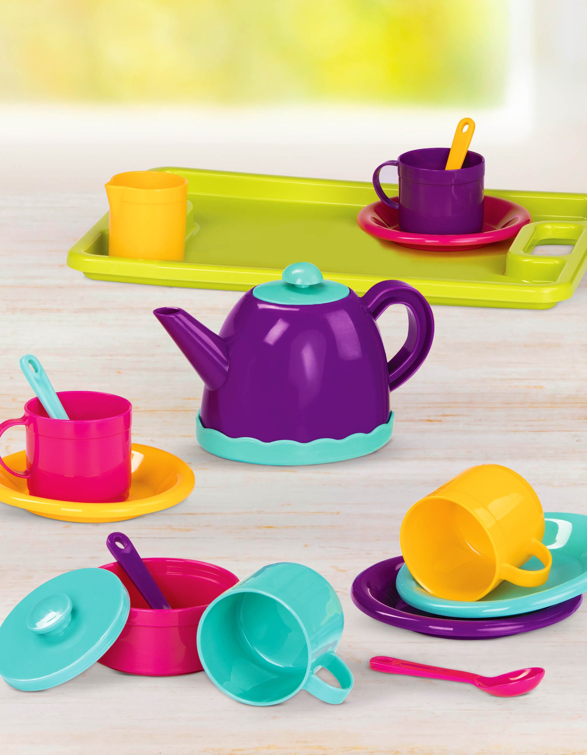 - Foodie Fun: Hold an imaginary feast for friends and family with this colorful and complete tea party & dinner for four playset!