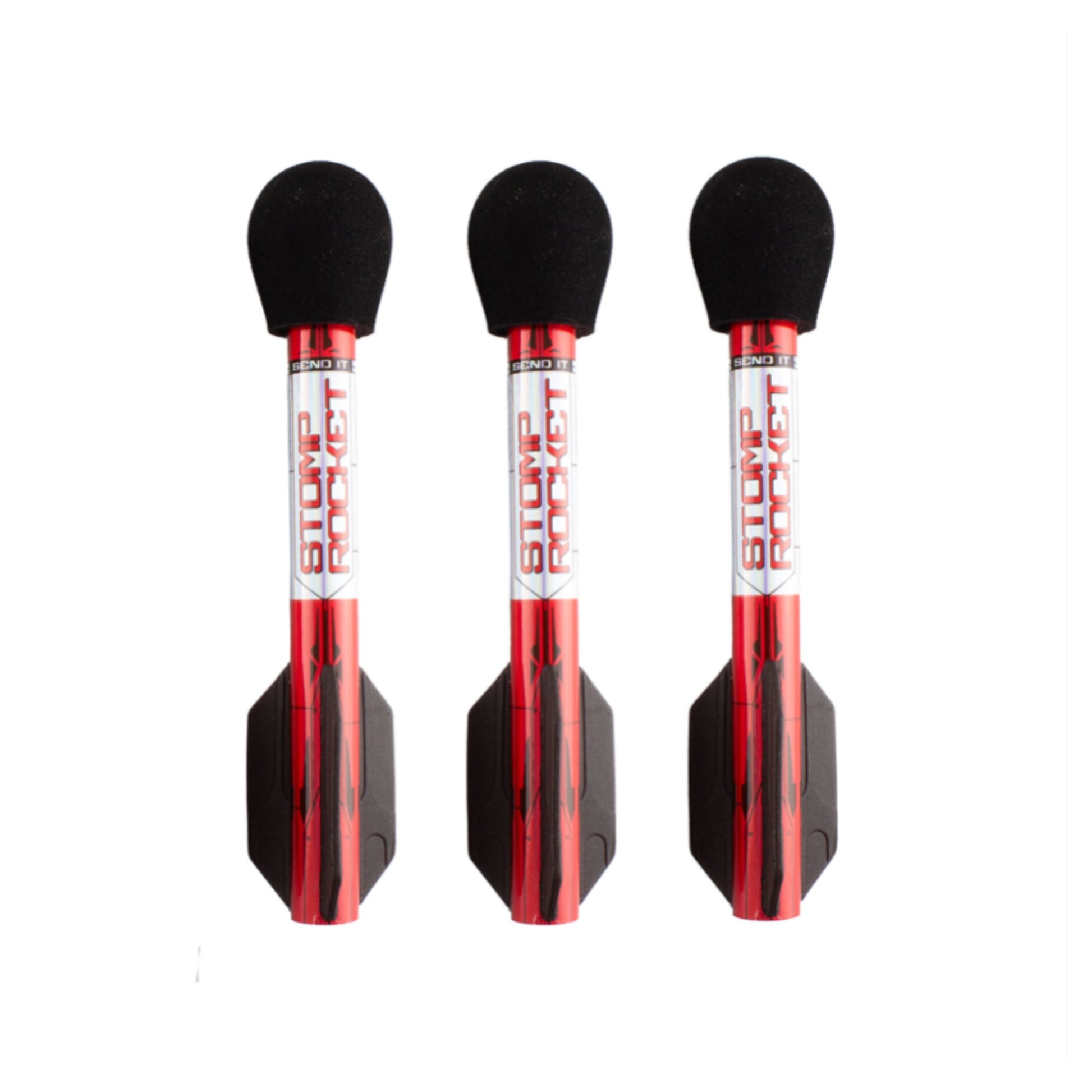 Launch rockets into the sky simply by aiming and stomping and watch as the rockets blast through the air! The harder you stomp, the farther they blast! With an adjustable aiming tool, you can fine-tune your launches for precision and challenge friends and family to reach new heights.