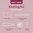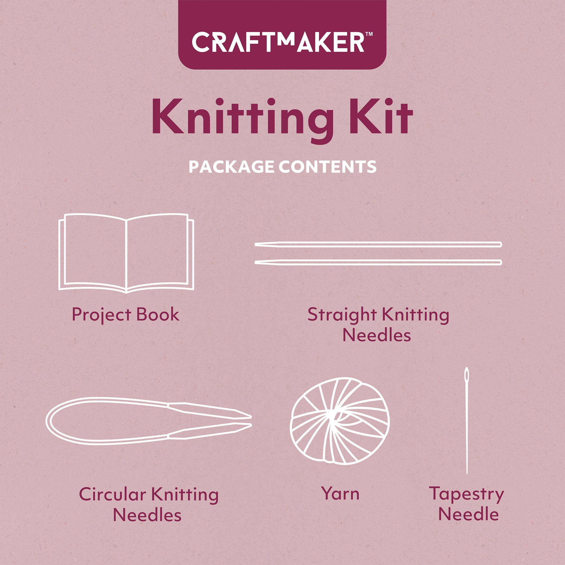 This high-value kit includes two pairs of knitting needles, 112 m12-ply wool, 90 m 10- ply wool, 1 tapestry needle and a 24-page book.