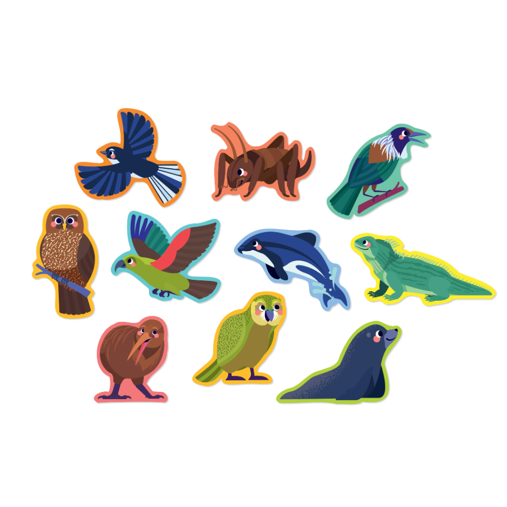 These beautifully illustrated 2-piece puzzles feature the animals of Aotearoa.