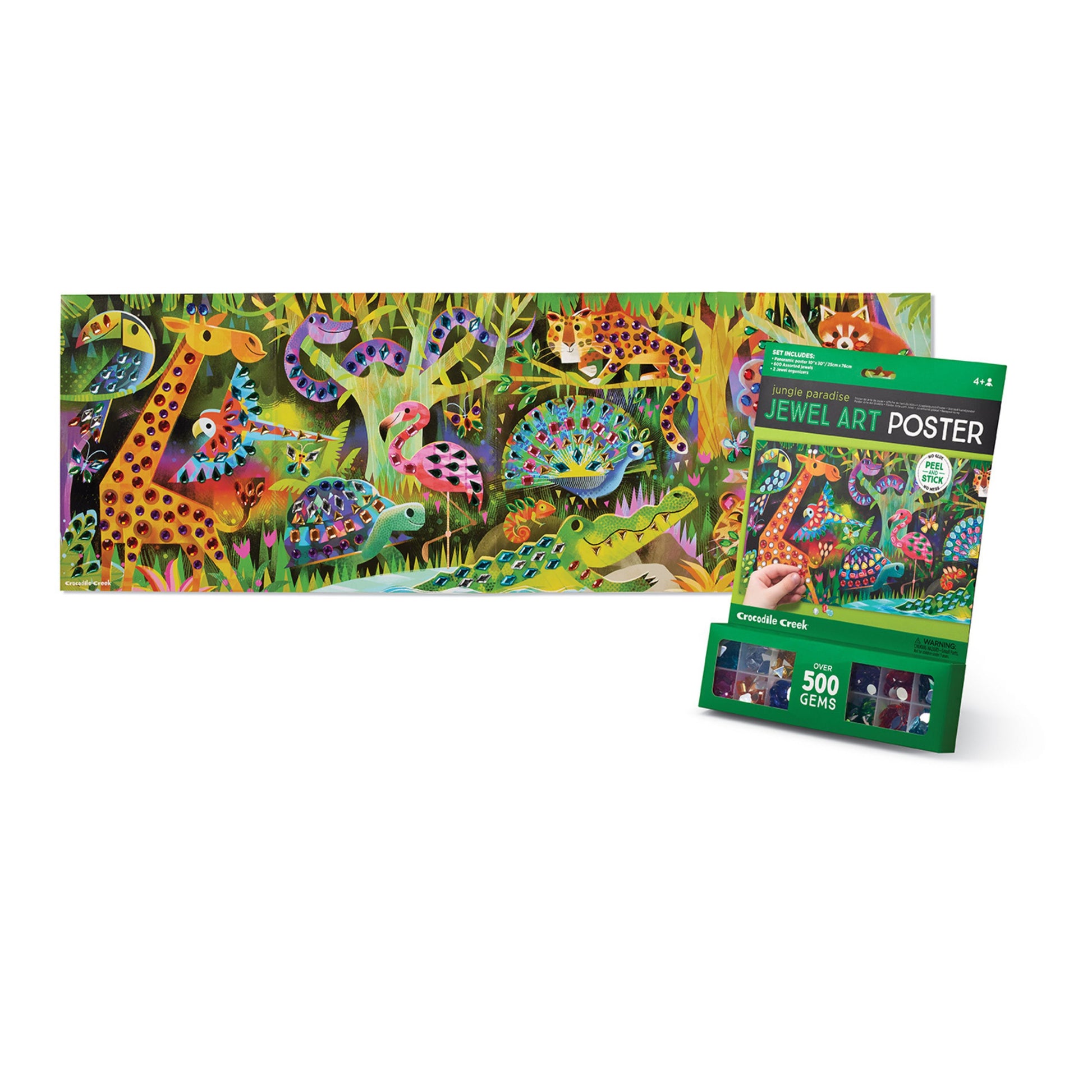 This easy and mess-free craft includes over 500 jewels in assorted colors and shapes plus a panoramic poster that is over 2 feet long! The extra-long poster is pre-printed with adhesive dots so you can simply peel off the protective sheet and stick on the gems.
