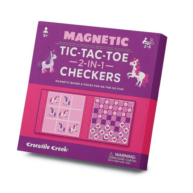 Crocodile Creek Magnetic Games - Tic Tac Toe & Checkers - Unicorn