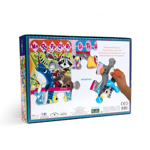 All aboard! From A to Z, this puzzle has a lot to see. All friends you will be glad you’ve met, who’ll help you learn the alphabet.