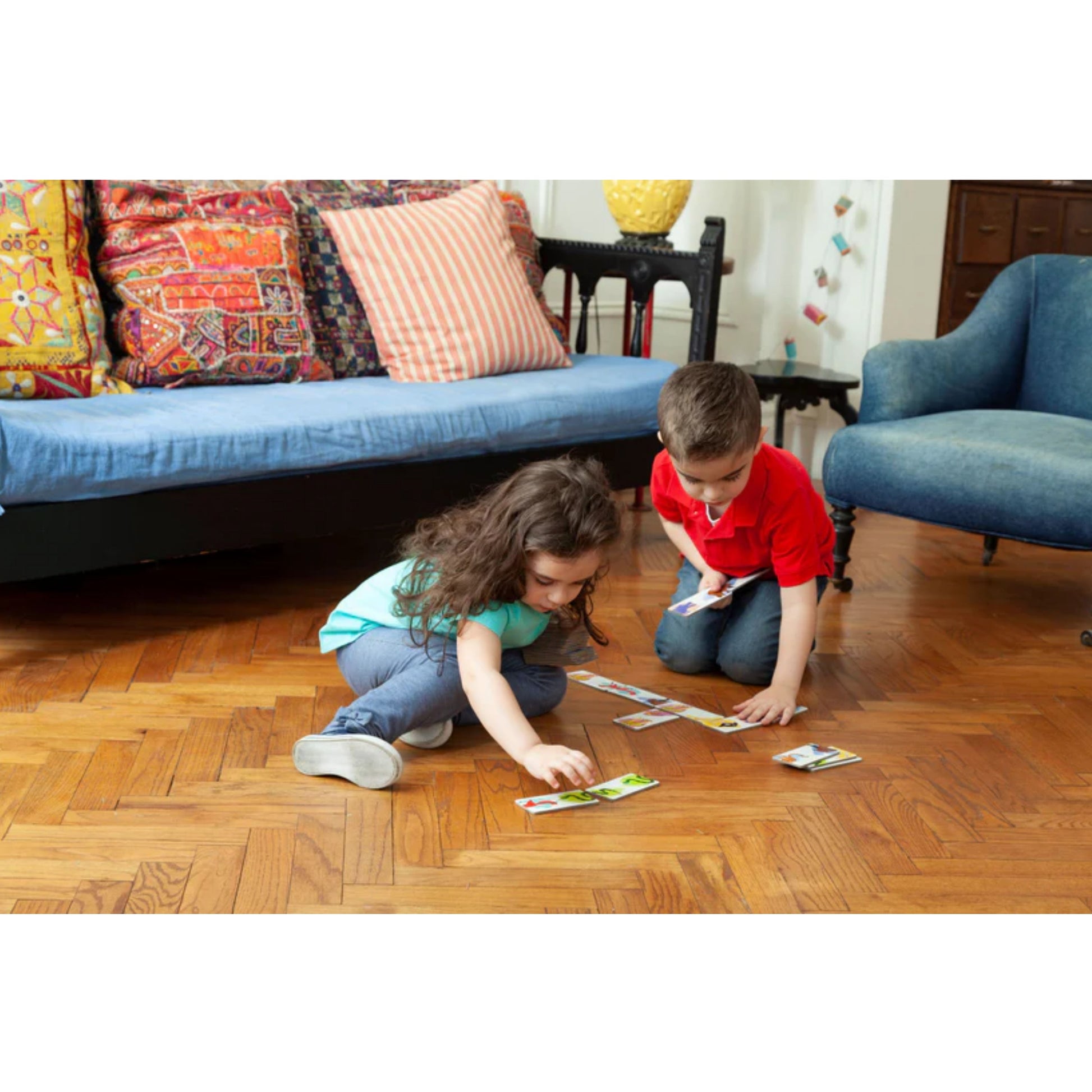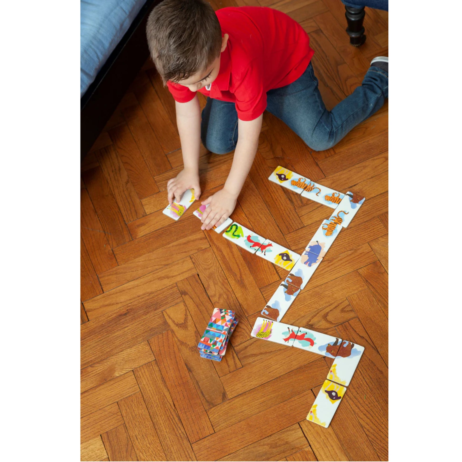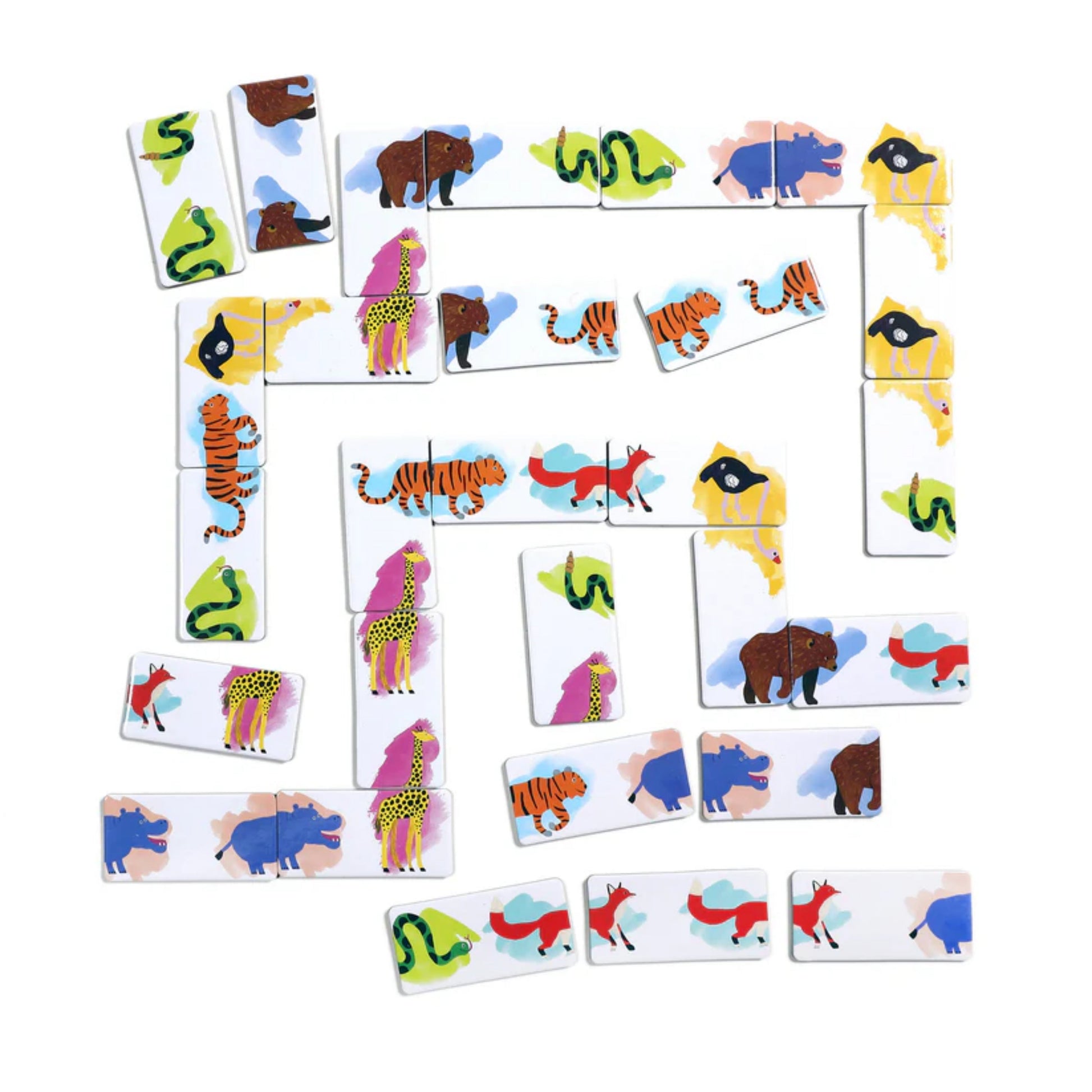 Take this Animal Parade everywhere you go! From snakes to giraffes, our Animal Parade Head to Toe Dominoes will delight children at home, at Grandpa's house, or on vacation. A great little size to toss in your bag and take on the go. Illustrated by Monika Forsberg.