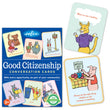 eeBoo's Good Citizenship Conversation Flash Cards use conscientious animals demonstrating responsible community behavior. Start a conversation about social responsibility! Good citizenship skills are an essential part of early education. Children must learn that they are part of a larger community, (whether family, school, country, or planet), and that responsibilities come with these relationships. These skills allow children to understand and enjoy a meaningful role in a social and ecological system larger than themselves.