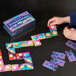 This bold, shiny take on a beloved classic offers a cosmic introduction to the game of dominoes. Each dazzling domino piece features two planet panels with silver, holographic foil. The set includes classic-sized pieces—perfect for players young and old. A game and gift the whole family can enjoy. Includes insert identifying planets.