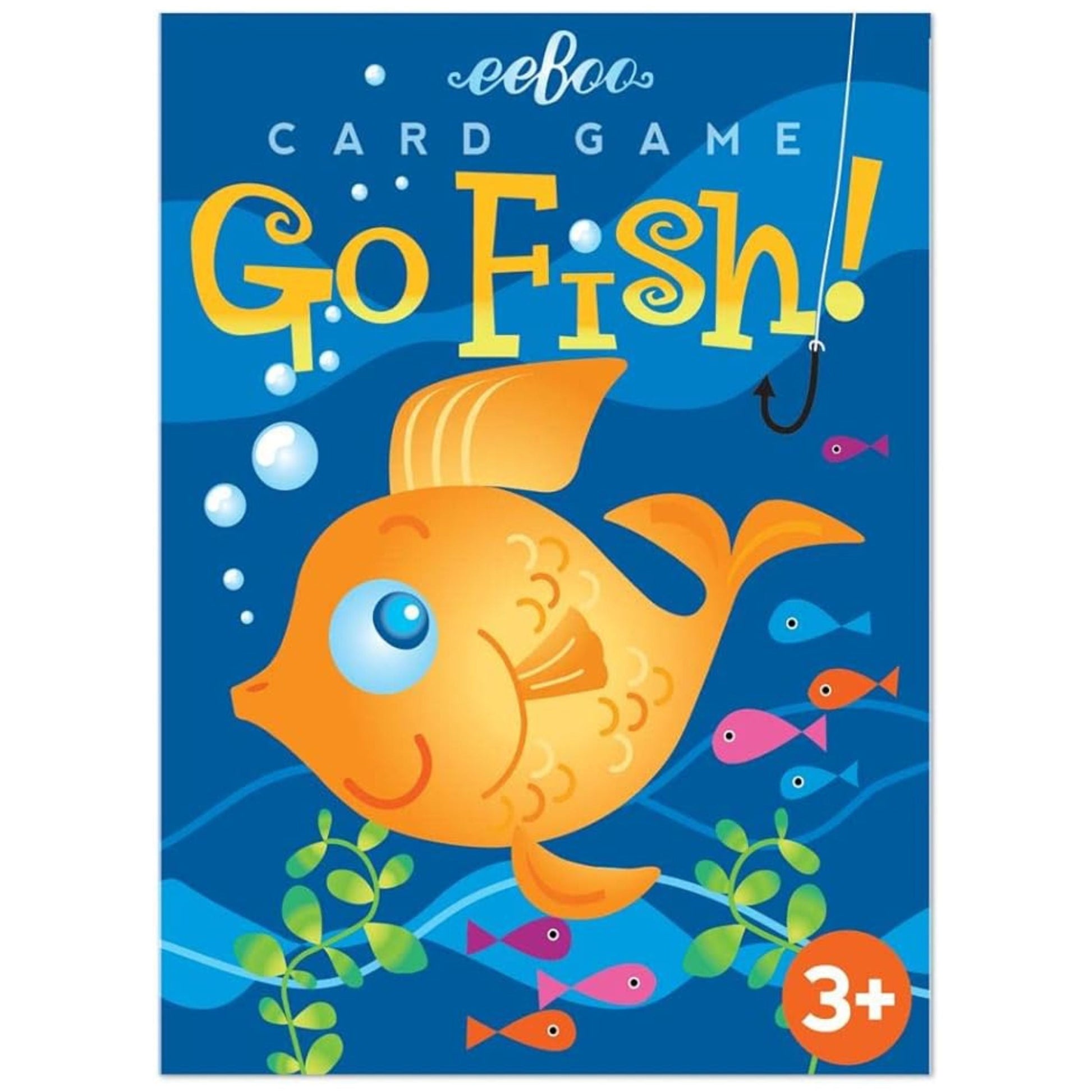 eeBoo's new take on an old game involves fish-shaped cards and color matching, with bold colors like hot pink and chartreuse. A great first card game that is easy to play. Illustrated by Julia Gorton.