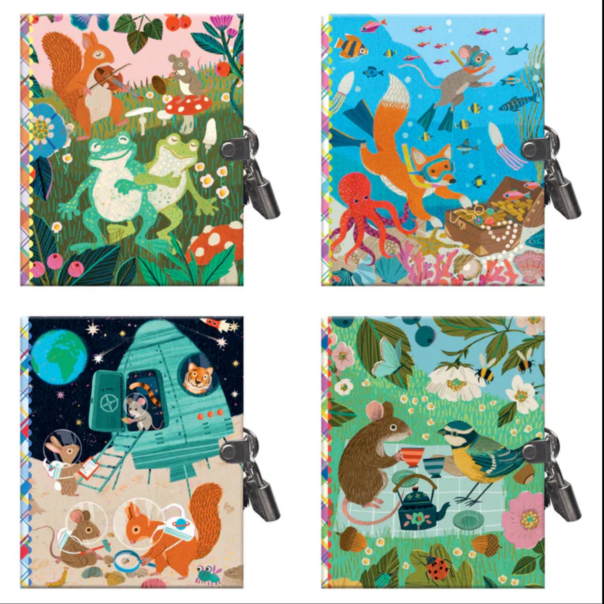 Jot down all your secrets with these pocket-sized journals. The four different journals feature whimsical animal artwork from Victoria Ball. Sweet animals at a tea party, finding an underwater treasure, a visit to the moon and a happy dancing!
