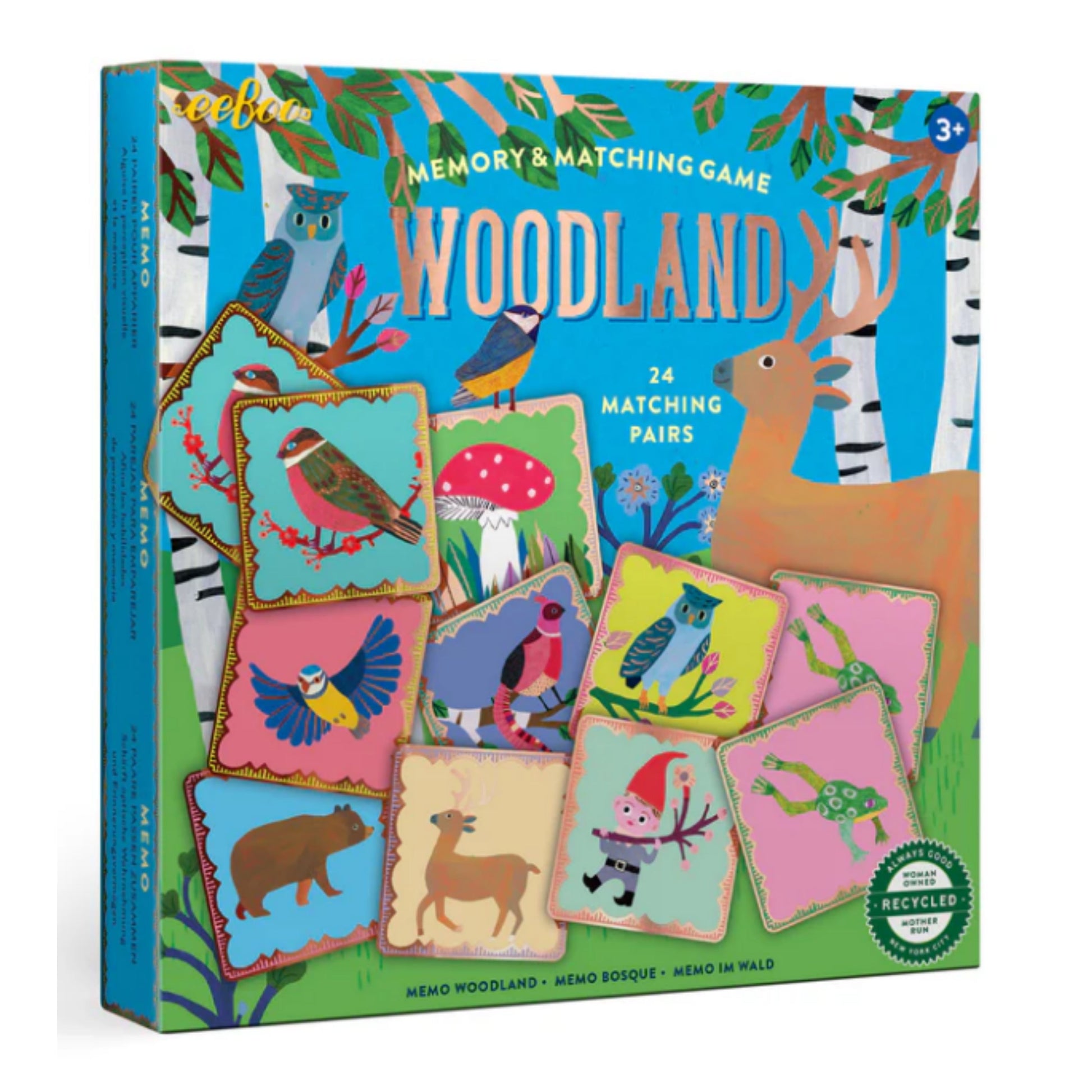 Invite your child into a world of natural wonder with this Woodland Memory & Matching game. Turn over each card to explore amongst the trees, meeting animal friends and discovering new wildlife. Each set contains 24 beautifully illustrated matching pairs finished with a luxurious copper colored gilding.