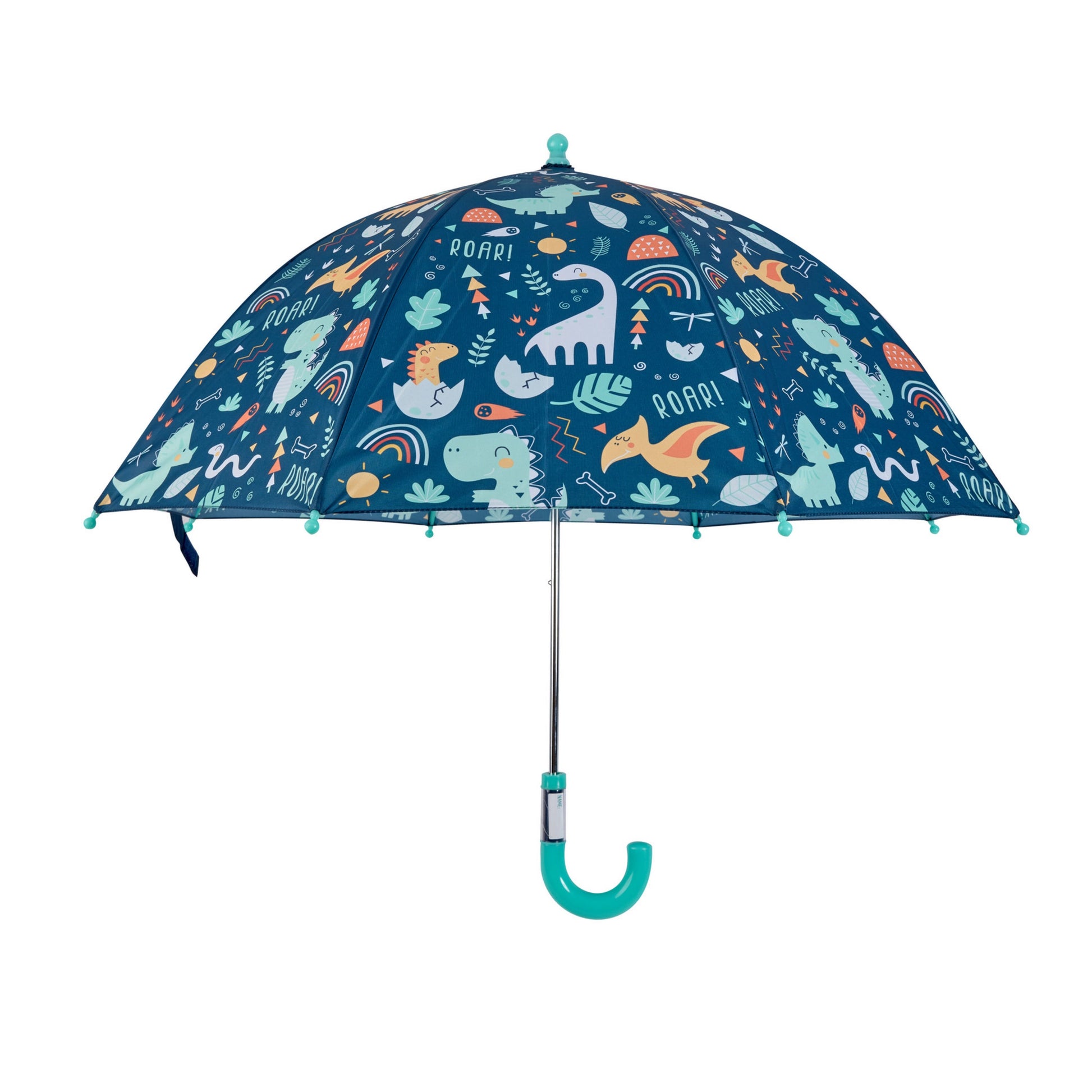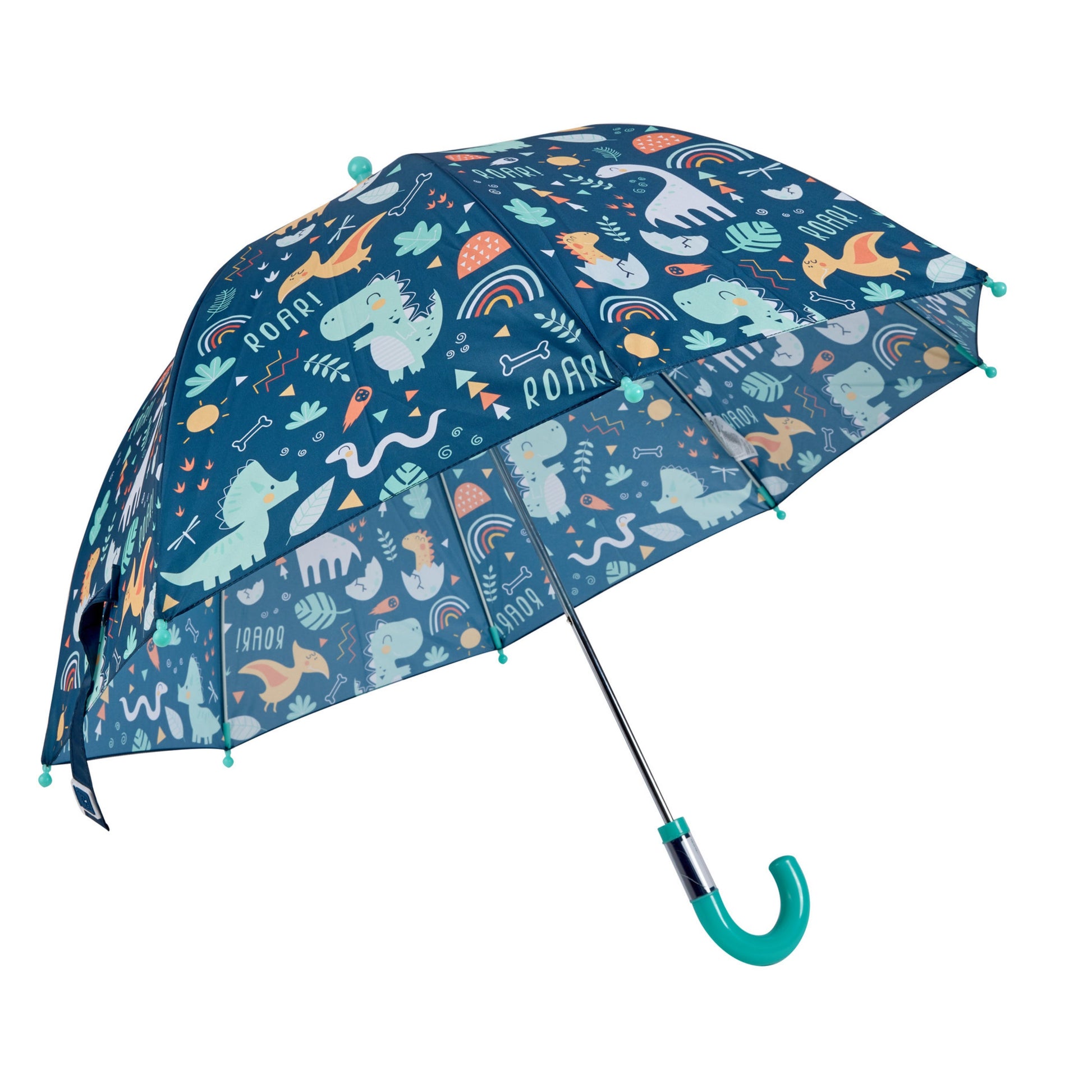 Features : Children’s umbrella with Dinosaursaur print design. It is both beautiful and practical and helps children to identify the physical features of the main Dinosaursaur species. Manual opening. Opens and closes easily so that they can handle it by themselves. Space on the handle to personalise it with their name. Strong and very durable. With protective guards on the rib tips for greater safety. Ages 2+