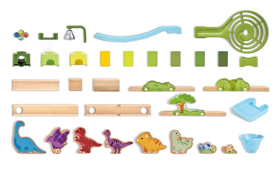 Unleash dino-themed marble run fun! With 131 pieces, ignite creativity, boost fine motor skills, and bond with your child. Ideal for STEAM learning and endless adventures. This set offers hours of imaginative fun, unlocking endless creative possibilities during playtime. Children will also enjoy the building fun and learning opportunities as they set up their runs. Plus, when combined with other Hape marble run sets, the adventure grows! IGNITE CREATIVITY: It promotes imaginative play and creativity as children construct their own marble runs.