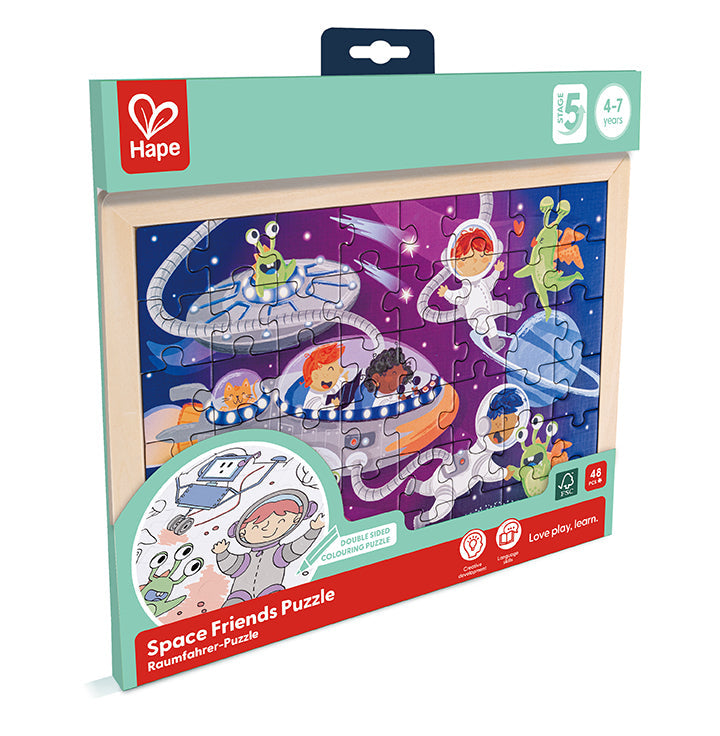 Hape Double Sided Colour Puzzle 48c Space Friends