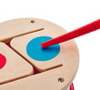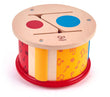 Create wild rhythms with this versatile drum! Use the stick on the top surface and the side ridges. Then flip over to play the wooden tone drum.