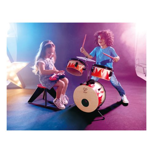 The piano keyboard can stay on the drum set, or be detached to play with on its own. The keyboard’s drum loops, song demos and musical sound effects are triggered with keys, an arm, buttons and a scratching disc. Your little one will learn to play along and invent their own tunes, right from the comfort of home.