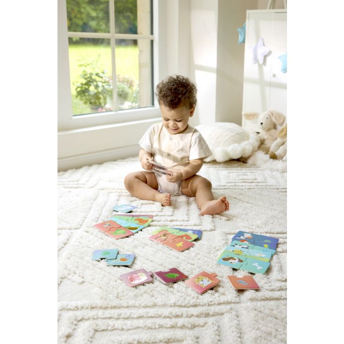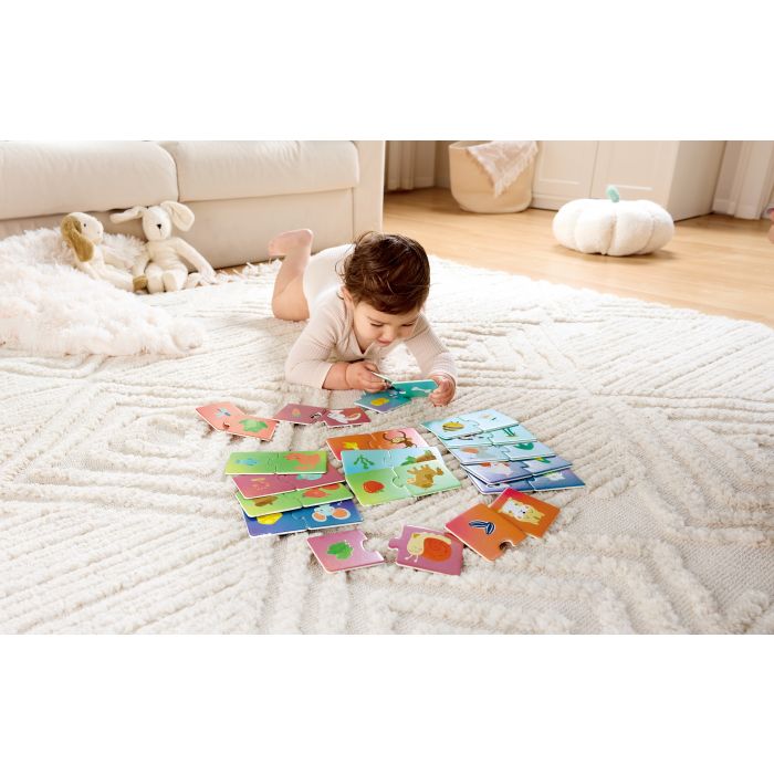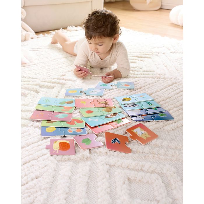 Learn about different animals’ favourite foods in this pair-up puzzle with 36 colourful pieces. As your toddler completes each animal puzzle, ask them to identify and make the noises of the animals. This will help to improve their vocabulary and sound recognition skills. CREATIVE CHALLENGE: This 36-piece jigsaw puzzle set contains 18 different animal pairs, providing a variety of challenges that will keep children engaged and encourage them to explore and learn at their own pace. EDUCATIONAL & FUN: This puzzle set is a delightful blend of learning and play, helping children understand the relationship between animals and their food when matching up puzzle pieces. MADE FOR LITTLE HANDS: The cardboard pieces are the perfect size for little hands to grasp and manipulate, making the puzzle set ideal for young children and promoting their motor skills. PROMOTES PATTERN RECOGNITION: It promotes cognitive abilities by encouraging children to recognise patterns and make connections between animals and their food. THEMED LEARNING EXPERIENCE: With a wide range of animal themes, each puzzle offers a unique learning experience that covers various animals and habitat scenes.