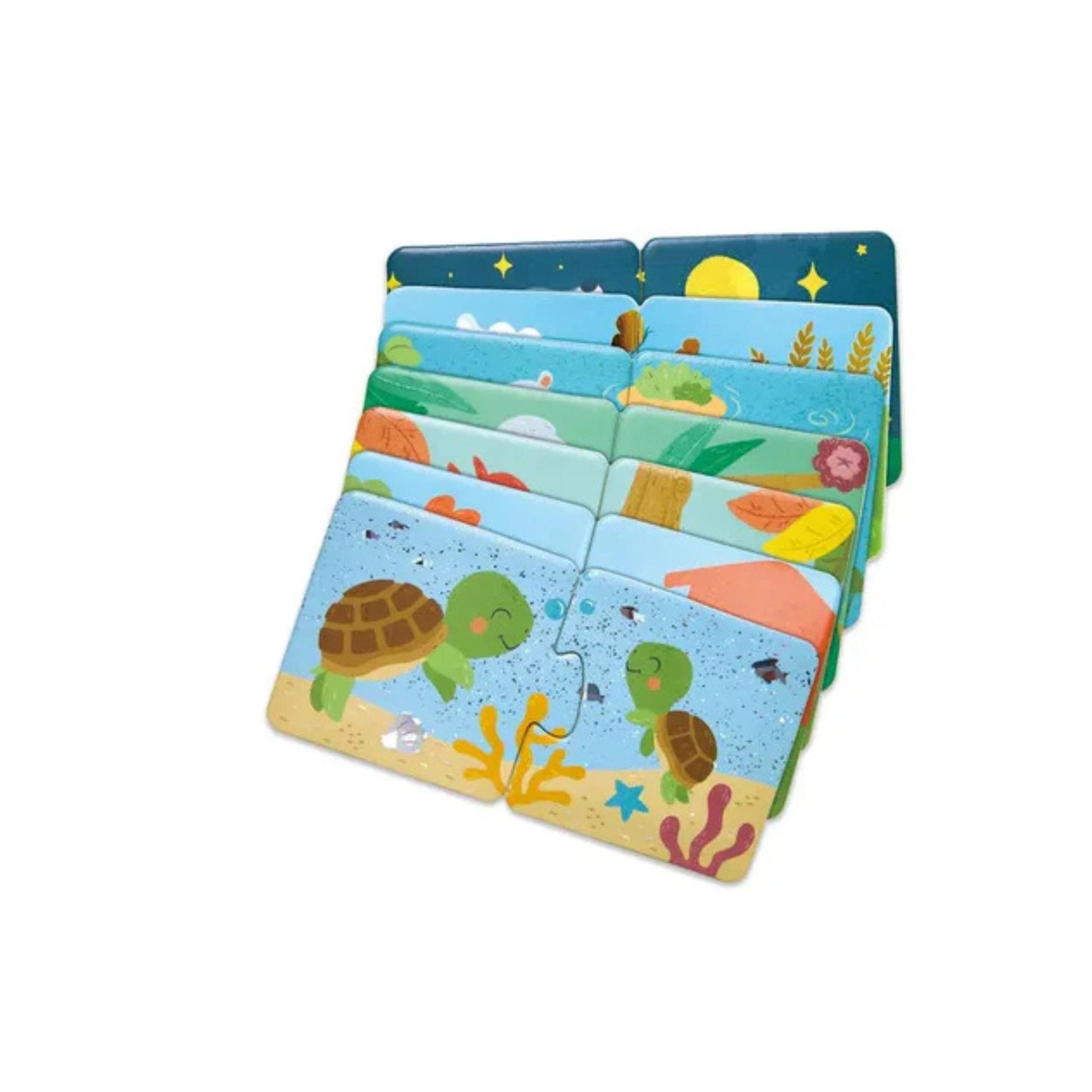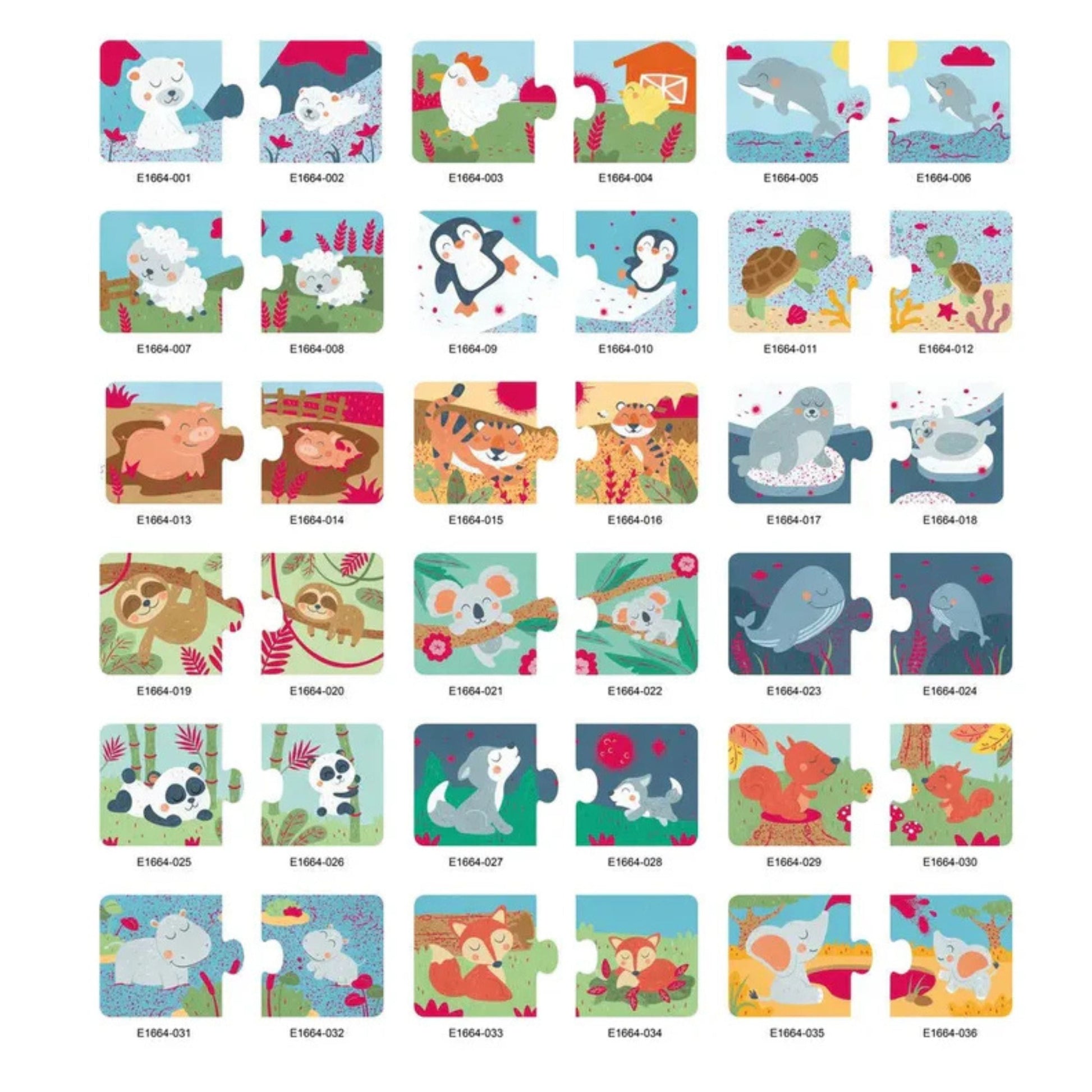 A 36-piece animal pair puzzle designed to challenge developing minds in matching 18 different animal pairs. As your little puzzle solver completes the jigsaws, ask them to identify and make the noises of the animals. This will help to improve their vocabulary and animal recognition skills. CREATIVE CHALLENGE: This 36-piece jigsaw puzzle set contains 18 different animal pairs, providing a variety of challenges that will keep children engaged and encourage them to explore and learn at their own pace. THEMED LEARNING EXPERIENCE: With a wide range of animal themes, from polar bears to elephants, each puzzle offers a unique learning experience that covers various animals and habitat scenes. MADE FOR LITTLE HANDS: The cardboard pieces are the perfect size for little hands to grasp and manipulate, making the puzzle set ideal for young children and promoting their motor skills. COGNITIVE DEVELOPMENT: By matching the animal pairs, children are encouraged to think critically and make connections, which aids in the development of their cognitive abilities. EDUCATIONAL & FUN: This puzzle set is designed to be both entertaining and educational, helping children to learn about different animals and their relationships in a playful manner.