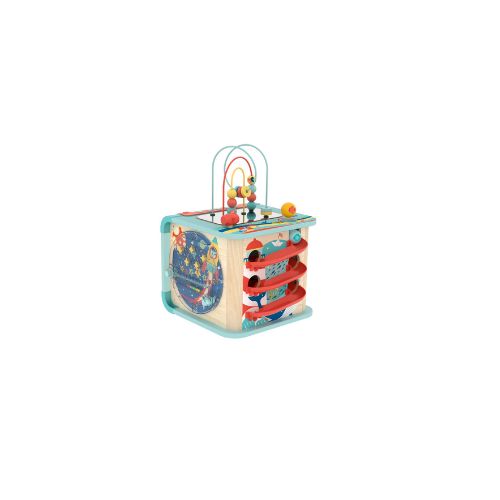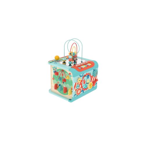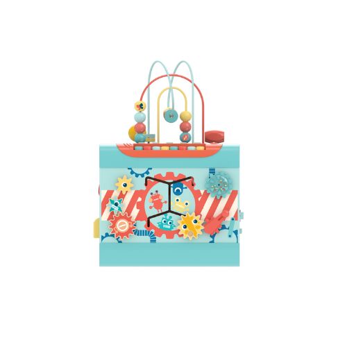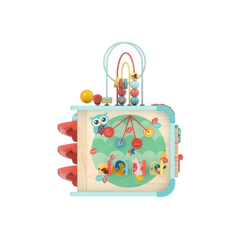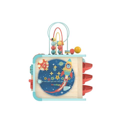 With five music modes to match five themes – piano, forest, mechanisms, ocean and rocket – your little one will never get tired exploring the cube for new sights and sounds. It includes the activity cube, one hammer and two balls. The activities include a bead maze, ball tracks, rotating gears and cogs, a shape sorting game, a pinball game and a hammer-and-ball game.