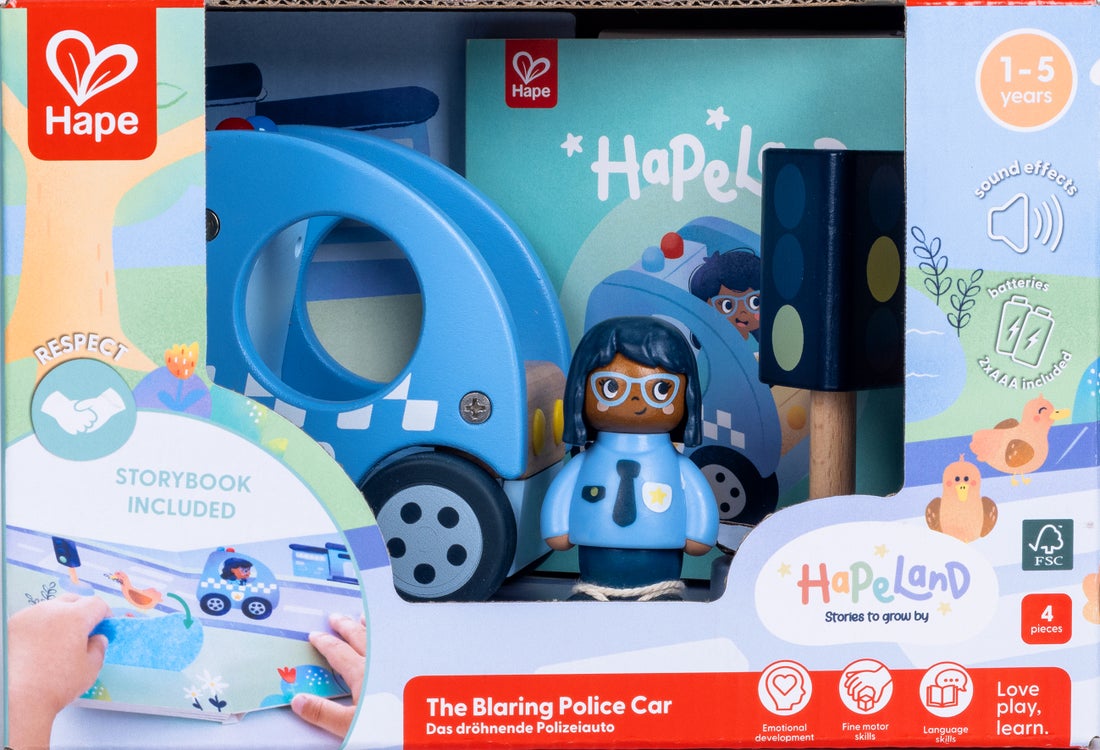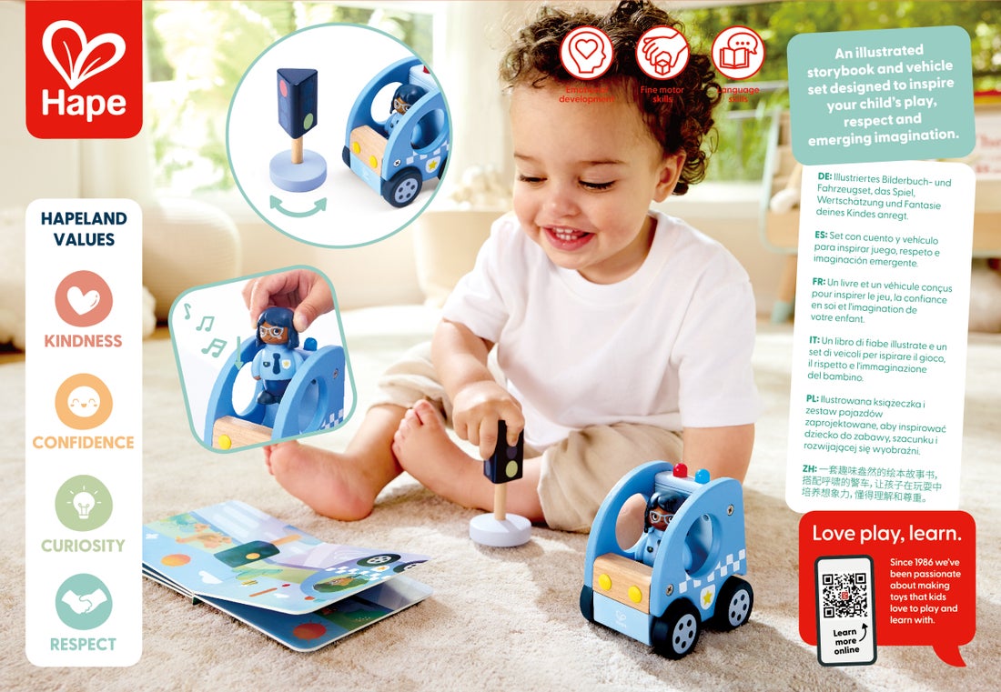 An illustrated storybook toy set designed to inspire your childs play, kindness and emerging imagination. After going through the story, encourage your toddler to create new adventures with the storys characters. Theyll use their imagination to explore the storys theme and think of new challenges and solutions. STORIES TO GROW BY: Each story has been created with care to nurture 1 of Hape Lands 4 positive play values. These are values that guide your child as they grow, and as their development deepens, the story in each book takes on new meanings.INSPIRE KINDNESS THROUGH PLAY: One of the best ways for children to learn? Role play! Focusing on guided and free role play, Hape Land prepares children with the skills to practise what they play in real-world settings.PLAYTIME WITH PURPOSE: Slowly guiding your child through each illustrated storybook helps to inspire different ways to play and explore the story, putting the power of playtime in their hands.DESIGNED FOR DEVELOPING TODDLERS: Every Hape Land toy set uses active participation, storytelling and emotional connection to deepen your toddlers cognitive development and make learning fun and natural.TINY WORLD, BIG POSSIBILITIES: Collect all the Hape Land storybook toy sets to create a tiny world founded on curiosity, confidence, kindness and respect.