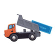 1. Drive the tip truck up to the boom crane. Tip the truck’s tray to dump the load.