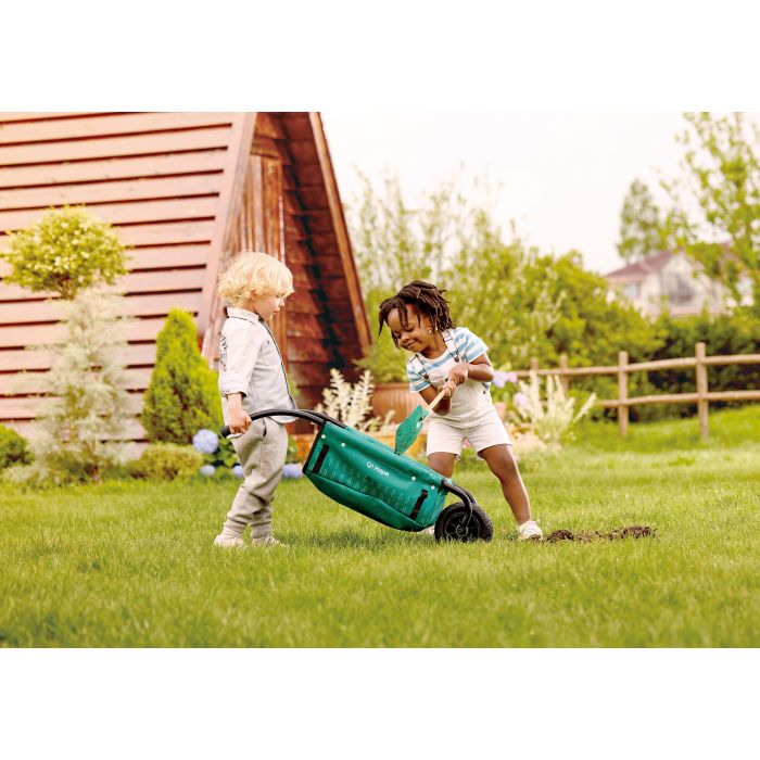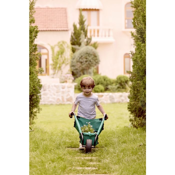 A sturdy and lightweight wheelbarrow with a detachable base and 20L capacity! Ideal for transporting soil, plants, and tools, this wheelbarrow has easy steering, comfortable handlebars and a powder-coated frame. Designed to encourage children's imaginations, cooperation and motor skills while making gardening fun and educational. A strong yet lightweight powder-coated metal frame, comfortable handlebars and detachable Oxford fabric (for easy cleaning) ensure this wheelbarrow is easy for children to manoeuvre in any garden. The easy steering offers flexibility, enabling children to effortlessly guide the wheelbarrow and maintain stability and balance during play. Designed to foster imagination, cooperation, and problem-solving skills, this wheelbarrow encourages children to engage in gardening activities while also developing their motor skills and hand-eye coordination.