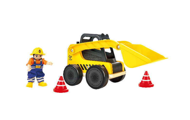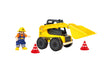 EASY-TO-STORE DESIGN: This toy includes one loader, one construction worker figurine with moveable arms and legs, and two road cones. The storage compartment at the back of the truck can be used to store the cones once little builders are finished playing.