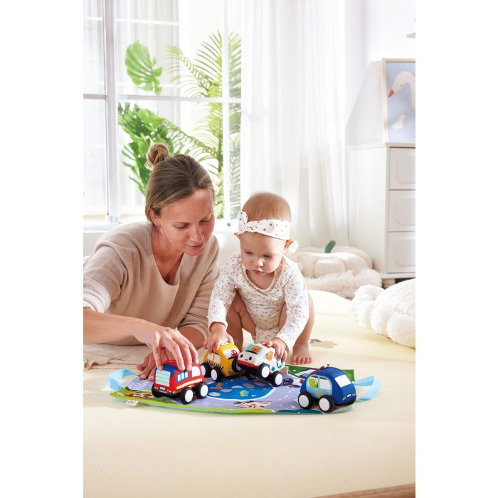 Let the wild ride begin with this plush pull-back car set. Perfect for hours of fun.