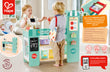 LIKE MOM AND DAD: This toy store features a hand-cranked conveyor belt and a smart scanner that displays item prices on the screen, offering a realistic shopping experience.