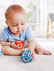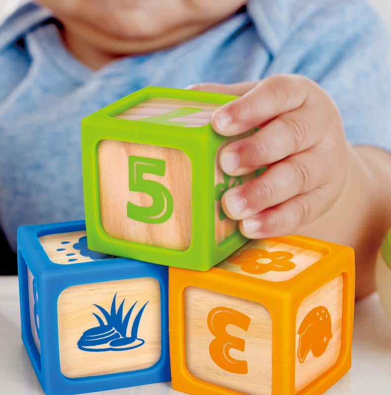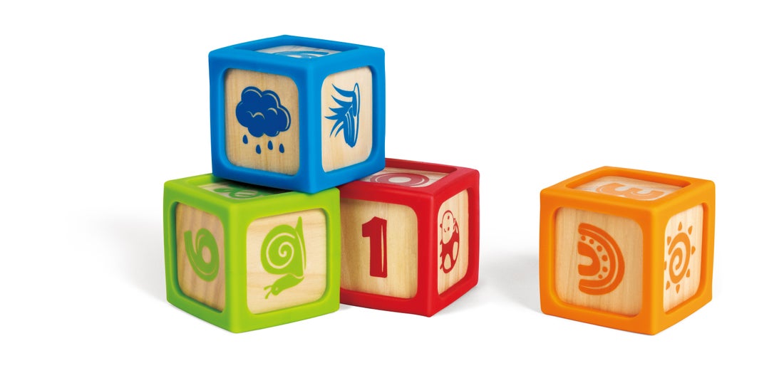 Transform playtime with our exquisite 4-piece wooden building block set! Crafted from wood with soft silicone edges and vibrant patterns, these blocks cater to early learning experiences and tiny hands too. Playtime is more than just fun; it`s a learning opportunity. While these blocks are a great start, your interaction makes them even better. Encourage your child to stack by size or number to boost their hand-eye coordination. VERSATILE EDUCATIONAL PLAY: These blocks promote multifaceted learning with numbers and patterns, fostering early cognitive growth. SAFE & QUIET: Made from premium wood and edged with noise-dampening silicone, these blocks guarantee a safe and tranquil play environment. VIVID COLOURS: The 4 blocks feature a vibrant array of colours, promoting playful colour recognition and exploration. HELPS WITH MOTOR SKILLS: Manipulating and stacking these blocks aids children in refining their motor skills and enhancing hand-eye coordination. PERFECT SIZE: Designed for the delicate grasp of young ones, these blocks are easy to grip, making them perfect for babies.