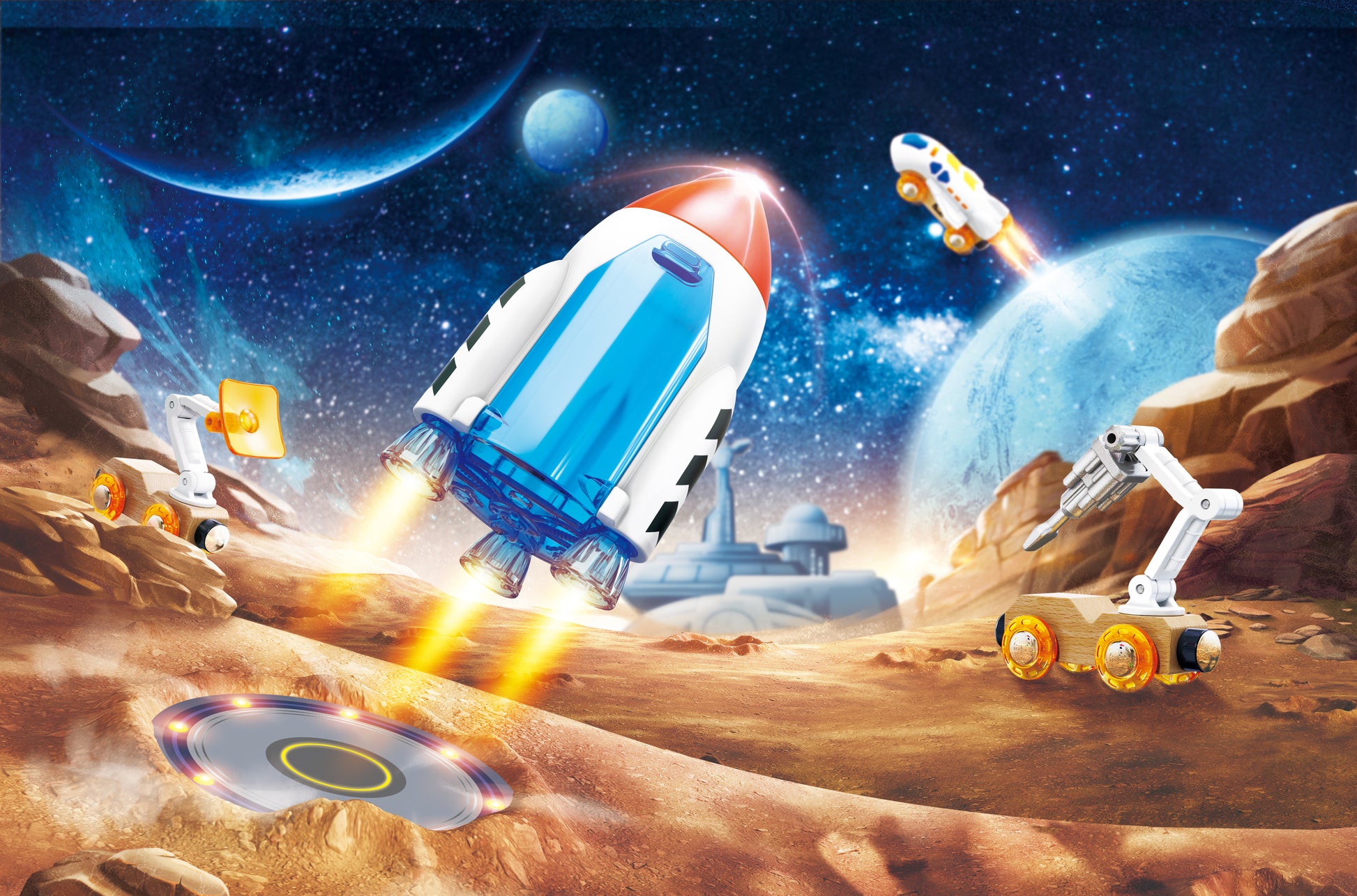 ASY TO CARRY AND STORE: The packaging transforms into an outer space scene during play, and it's effortless for children to neatly store all components in the box afterward.
