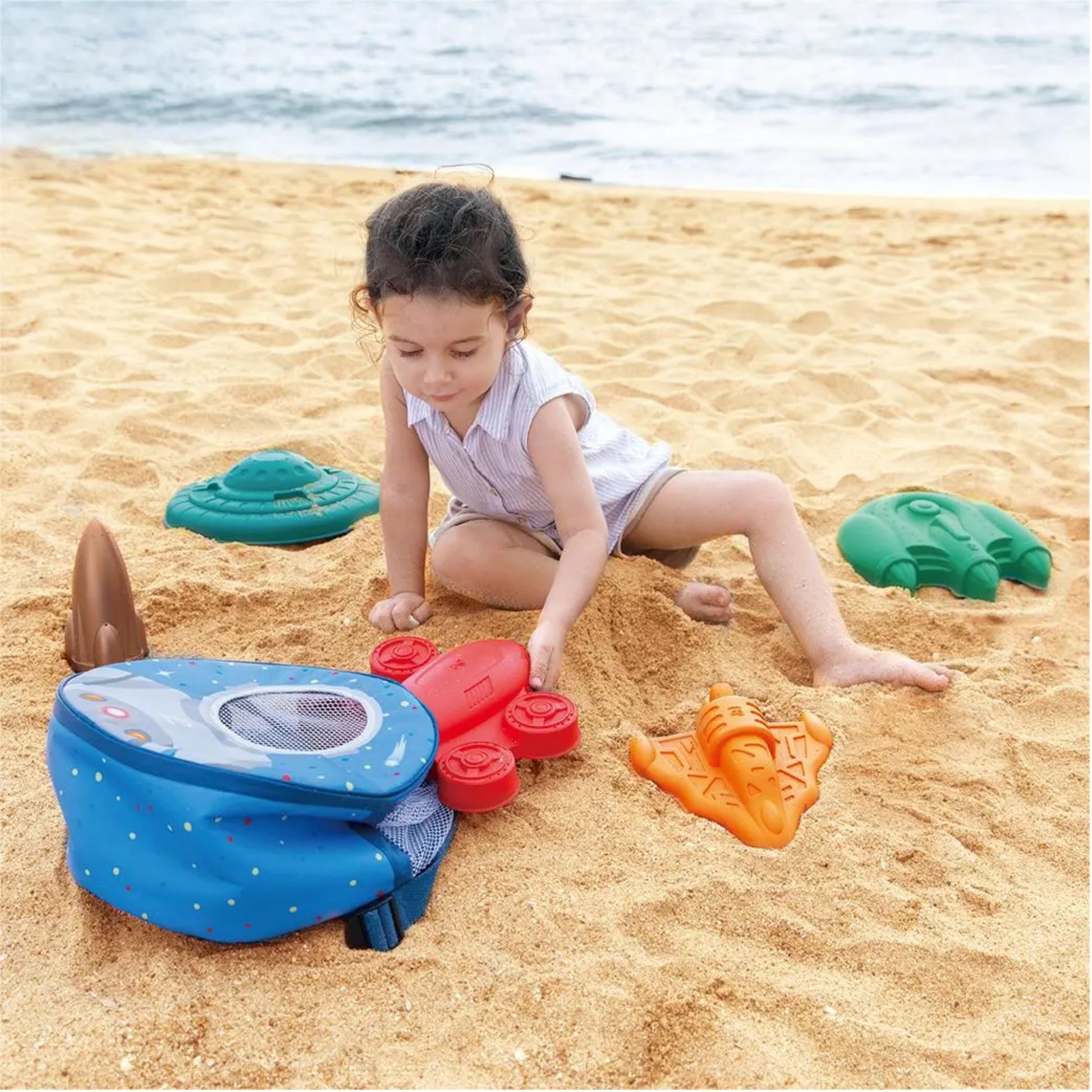 PACK UP & PLAY: This set is easy to carry (and tidy up!) with the included waterproof space-themed beach backpack.