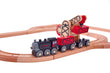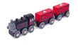 Chug your way along the track with this classic steam-era freight train! With a black engine and two bright red carriages, it is sure to get the job done.