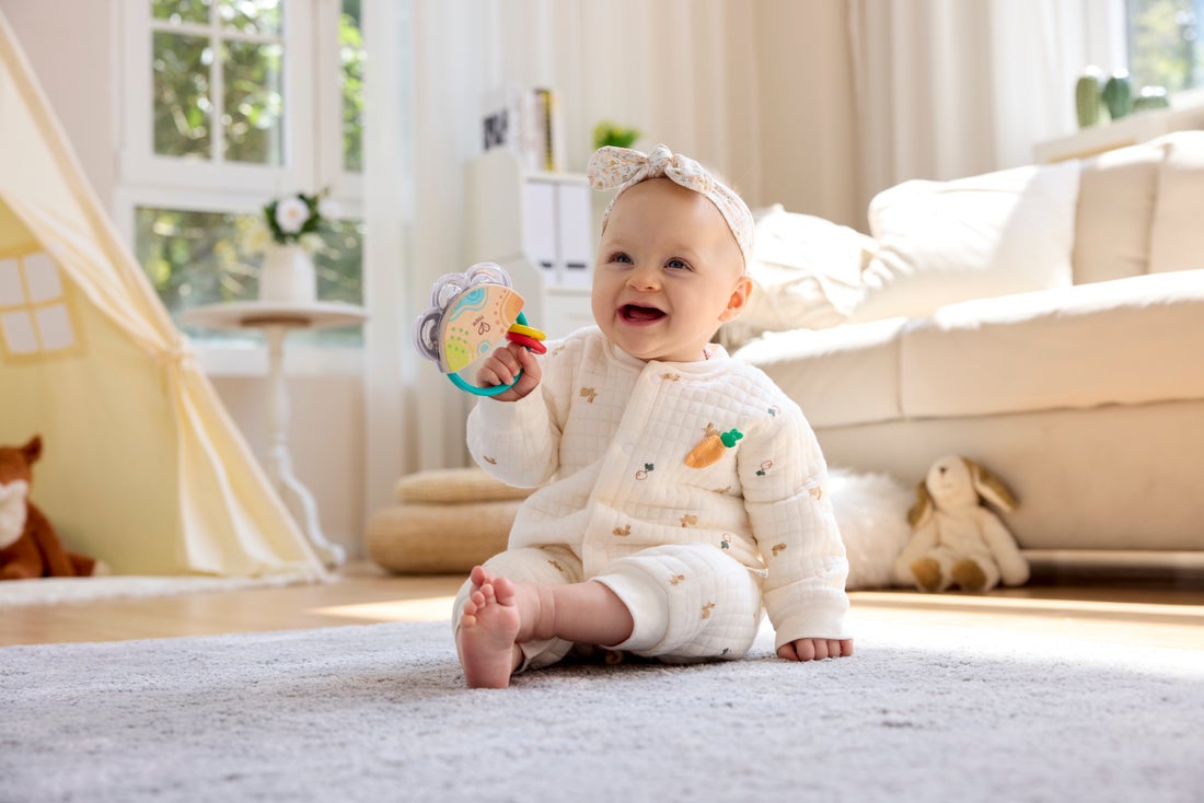 Promotes fine motor skills and helps concentrated listening for babies aged 3 months and over
