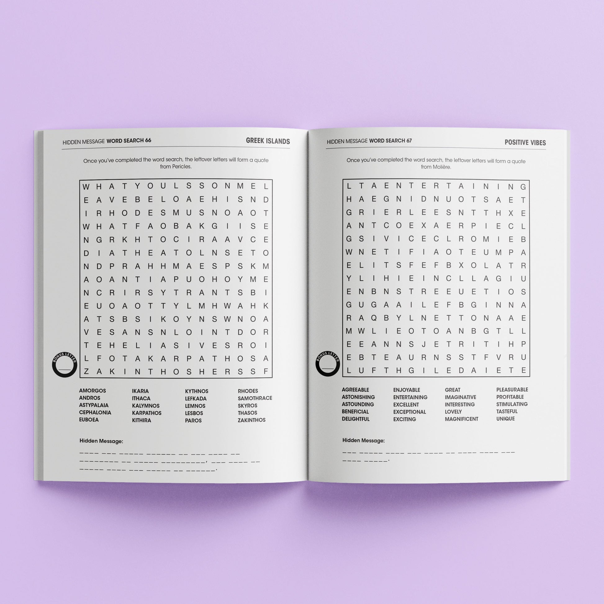 • 96-page book with 80 word search puzzles, each with their own theme!