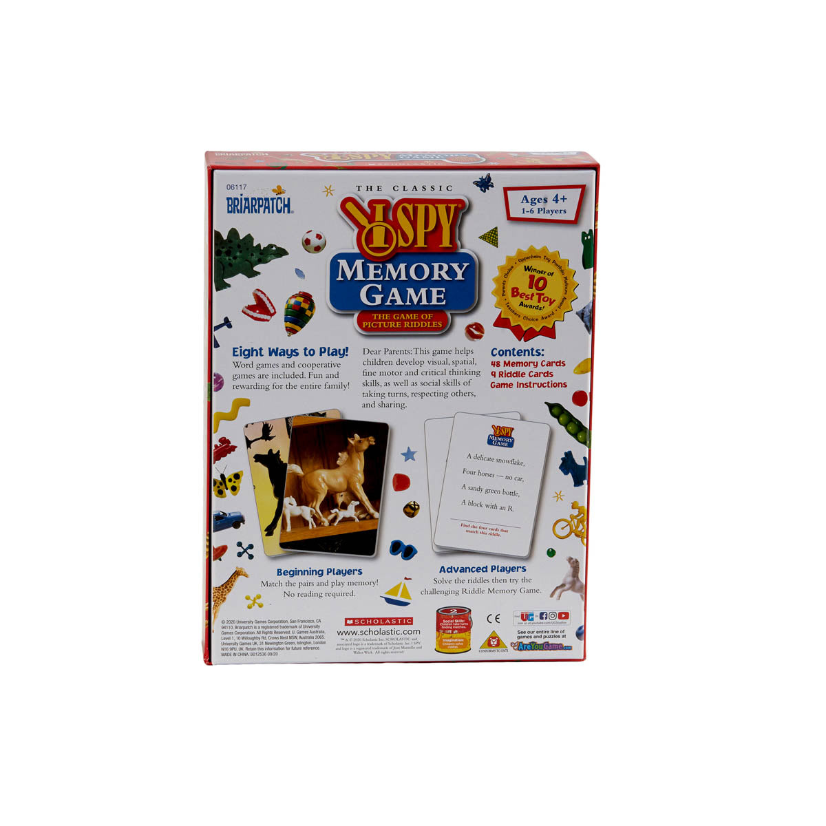 Contents: 48 memory cards, 9 challenging riddle cards, rules for 8 ways to play