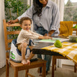 Smart multi-functional design; booster seat for dining table or can be used as a floor seat; compact footprint is easy to enjoy at home or bring on the go