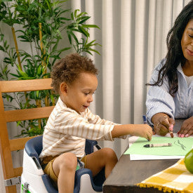 Meals are an important part of family time. Enjoy more laughter and conversation – including baby talk – by giving your little one a seat at the table with this feeding chair. The Ingenuity Baby Base 2-in-1 Seat in Night Sky easily attaches to dining chairs so your baby can sit up higher and see more during family dinners. This portable baby feeding seat works just as well sitting with you at the table or as a floor seat during playtime. The removable tray gives your baby their own perfectly sized table, so snacks or toys are easily within reach. When not in use, the tray conveniently tucks away right underneath the booster seat itself. As your baby grows, you can remove the foam seat insert and convert the baby booster into a toddler seat. For all those meals in between, you can count on the wipeable seat and dishwasher-safe tray to leave you more time for family catch-up and less for kitchen clean-up.