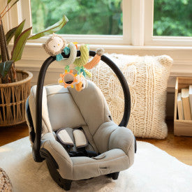Get baby acquainted with Ingenuity's favorite woodland buddies with the Nally & Friends Spiral Activity Toy Bar! The multisensory toy bar keeps baby entertained on the go. The soft fabric spiral design of friendly-faced Nally the owl easily wraps around the handle of most carriers and seat bars of a stroller. The activity bar comes equipped with 3 unique and multi-texture toys to stimulate baby's senses and encourage tactile ability. The adorable toys are removable and interchangeable for ease on the go. The toys included are a mirrored, multi-texture sun toy with tags, Kitt the fox character toy that plays calming nature-inspired melodies, and a BPA-free silicone teether with textured fabric leaves. Thanks to the innovative design, the Nally & Friends Spiral Activity Toy Bar can tag along while you and baby are on the run or relaxing at home. Treat baby (for age 0M+) to this super-cute toy bar to experience gummy smiles and contagious giggles!