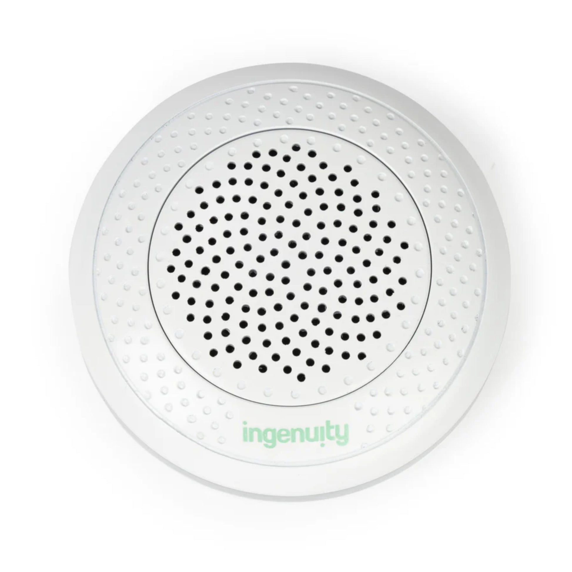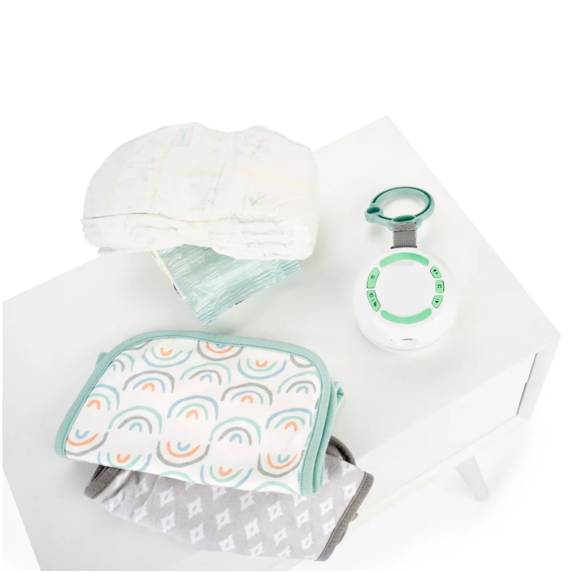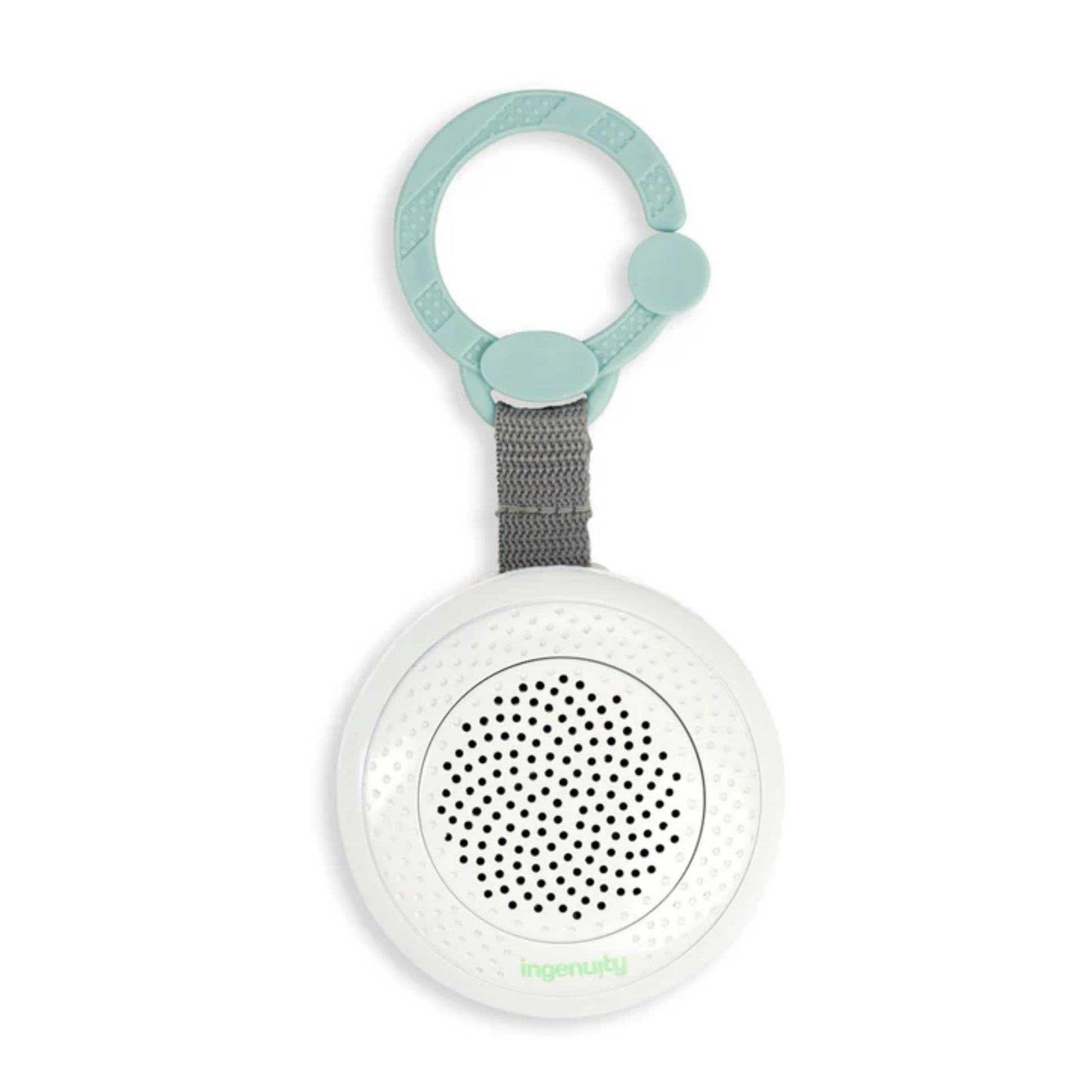 Help keep baby calm at home or on-the-go with the multi-purpose Pock-a-Bye Baby soother and speaker. It provides effective soothing to help calm baby with preloaded content including melodies and nature sounds. With 10 different melodies, white noise, ocean waves and a calming babbling brook, baby is sure to enjoy the comfort this soother plays. Bluetooth technology means you can connect to any of your streaming services to choose your own soundtrack. Change the volume or skip tracks with the press of a button and charge easily with a USB cord (wall adaptor not included). Features an auto-shut off timer to schedule soothing sounds for 30, 60, 90 minutes. Its compact design means it fits easily on baby's dresser, in a diaper bag, on a stroller or more. Use the removable link to clip on to mom's gear of choice to keep baby soothed or entertained while on the go. With baby’s favorite sounds playing no matter where they go, they’ll feel at peace. From baby to toddler and beyond, the soother becomes a fun speaker that they will use for years to come.