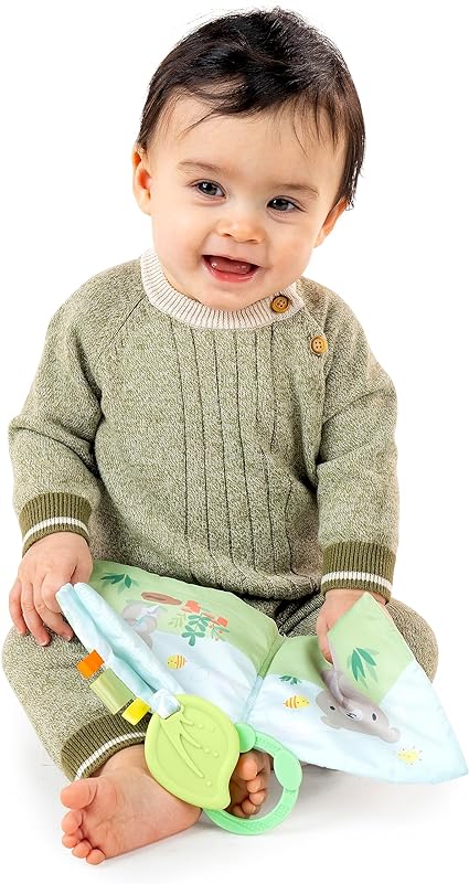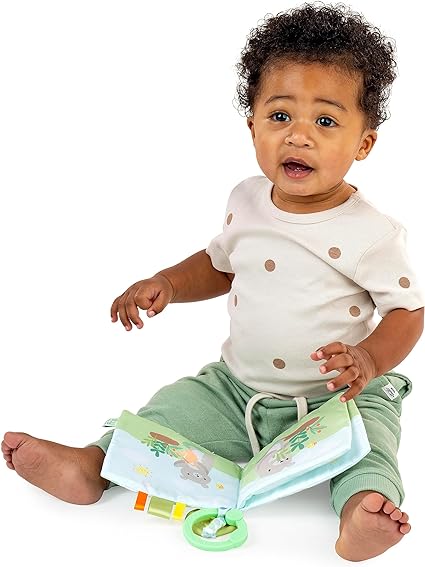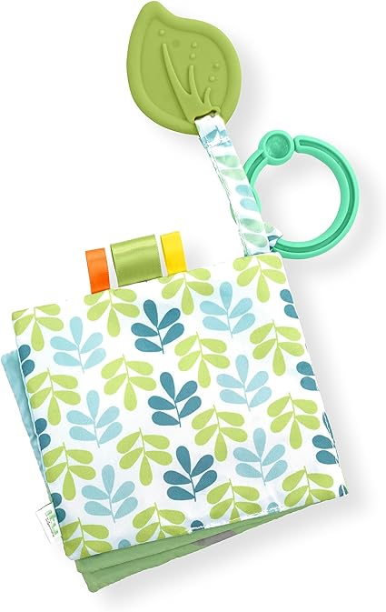 Raise baby to be a bookwork from birth with the ity by Ingenuity Soft Book - Nate! This 4-page language-neutral book is made of soft plush materials and features Nate the bear. The soft book features multiple textures to keep baby engaged, such as the crinkle (hidden inside) and 3 satin ribbon tags. The tags encourage self-soothing, while also helping to hone baby's fine motor skills. Need to keep baby entertained on the go? This soft book is the answer! The book's included C-link is great for attaching to stroller handles and diaper bags. A growing baby needs comforting 24/7. So, we've included a BPA-free leaf-shaped toy to help soothe baby during fussy moments. Baby will love the Nate the bear's exploration of a colorful garden in the soft book! This gender-neutral soft book is an excellent nursery gift that will easily become a parent's go-to comforter for baby. Pair this book, perfect for age newborn and up, with other ity by Ingenuity goodies starring Nate.