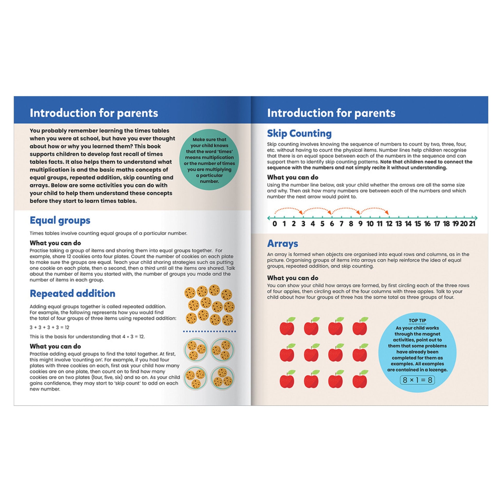 The book introduces key concepts such as the language and the layout of times tables. The magnet activities allow your child to apply what they have learned and build their times tables as they master multiplication facts.