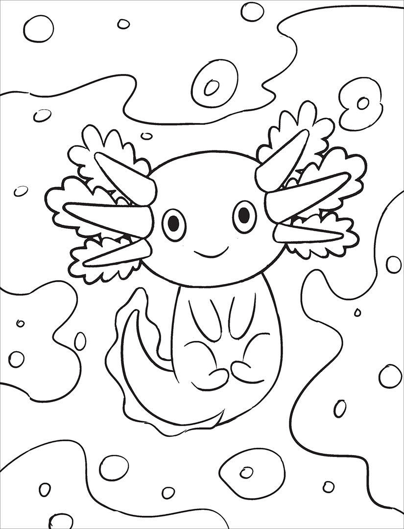 Join the axolotls on an adorable colouring journey! Featuring
