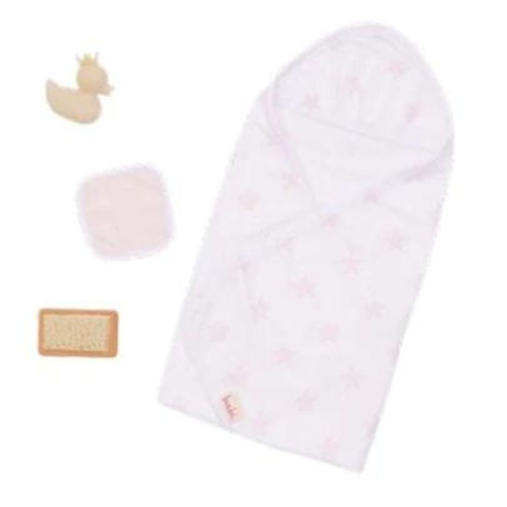 ll the bath time prep done with this bath time outfit. Let your child have a fun bath time experience with their newborn doll. After giving the baby doll a nice warm pretend bath, snuggle your baby foll up in the hooded towel.