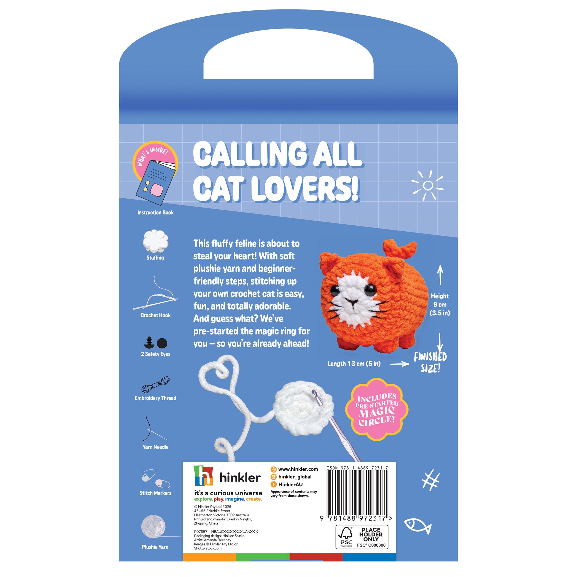 "Channel your inner artist with this Oh My Craft Cuddly Kitten Crochet Plushie! This crochet kit makes it super easy to stitch up the most adorable kitten! With the softest chenille yarn and easy beginner-friendly steps, crocheting your own kitty friend